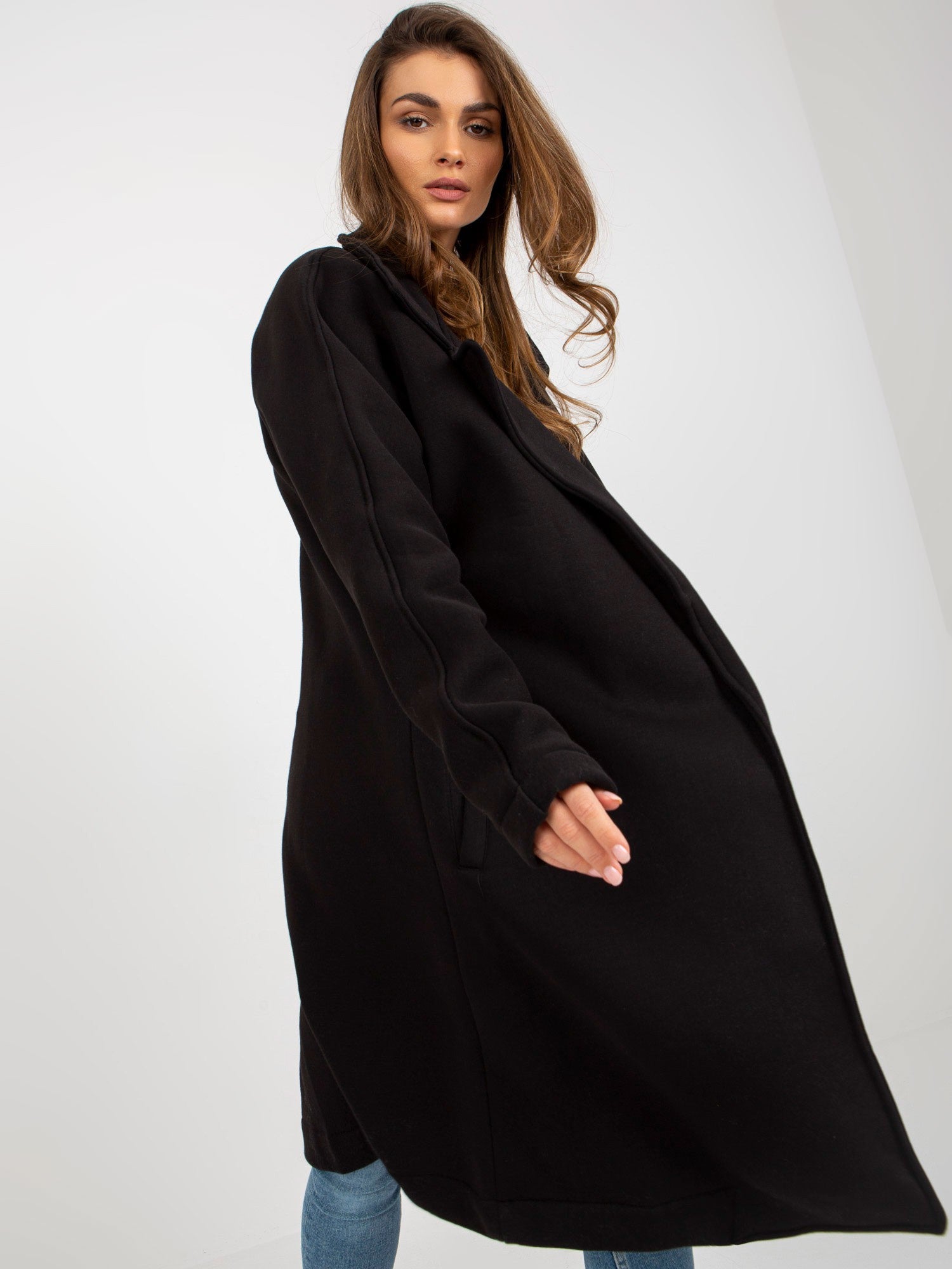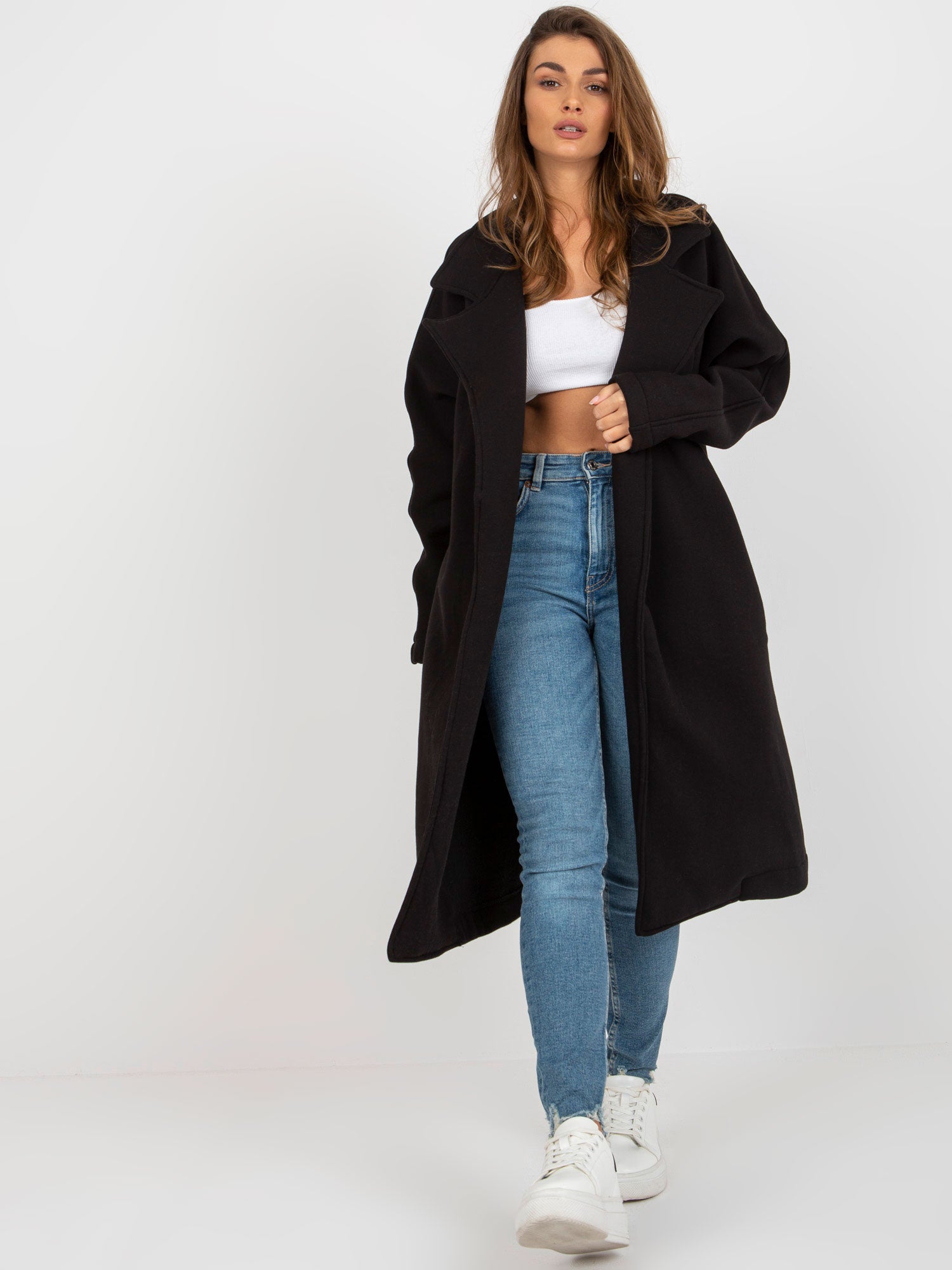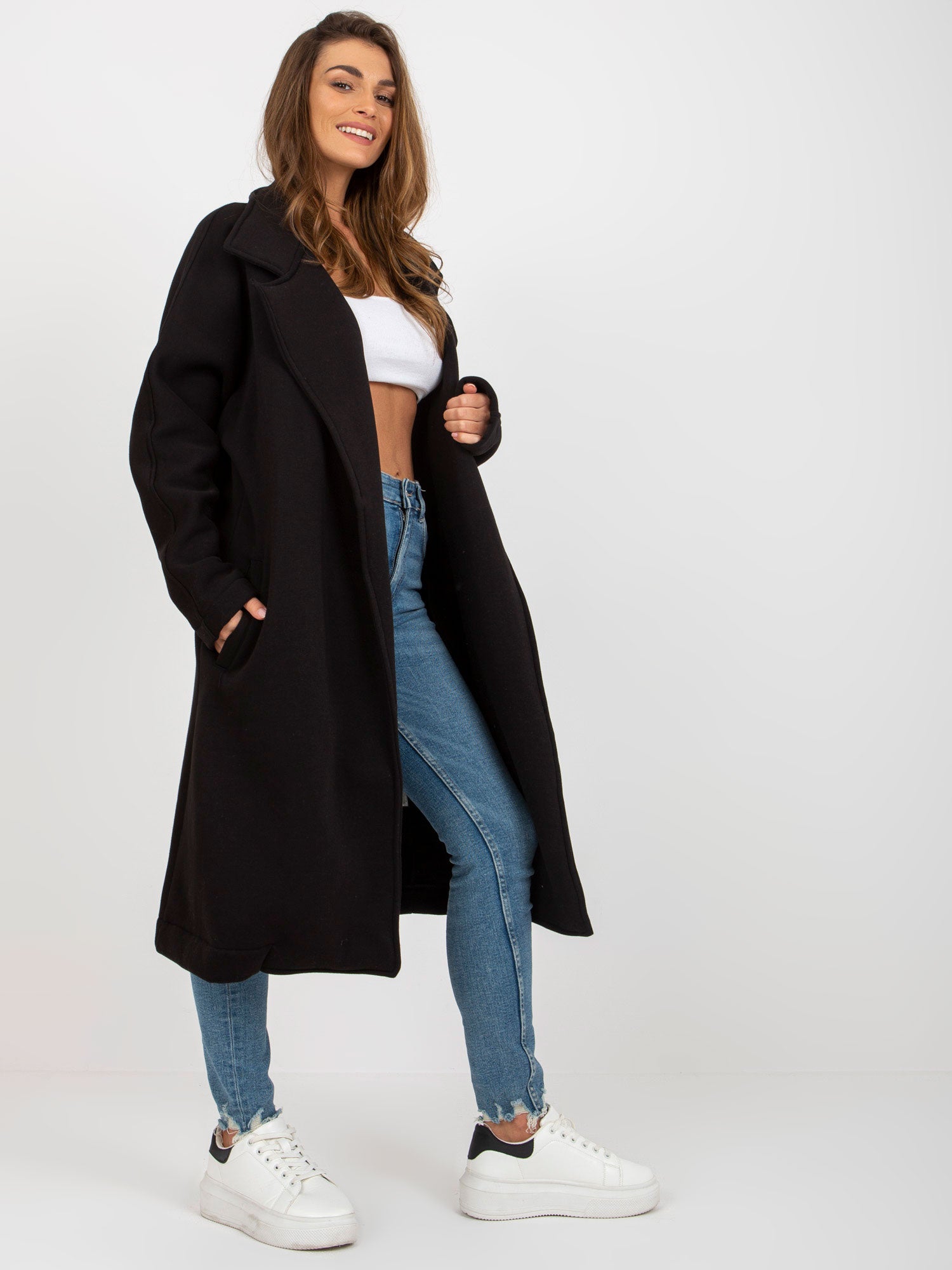 Wymiary płaszcza w rozmiarze one size mierzone na płasko: szerokość pod pachami - 69 cm, długość rękawa - 58 cm, długość całkowita - 106 cm.