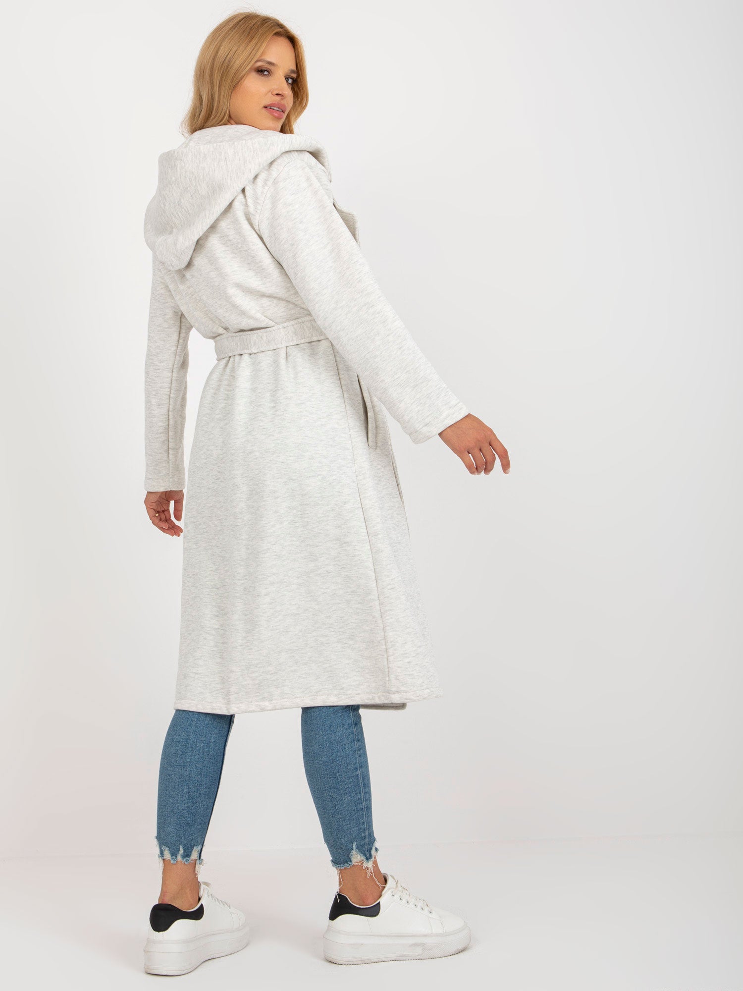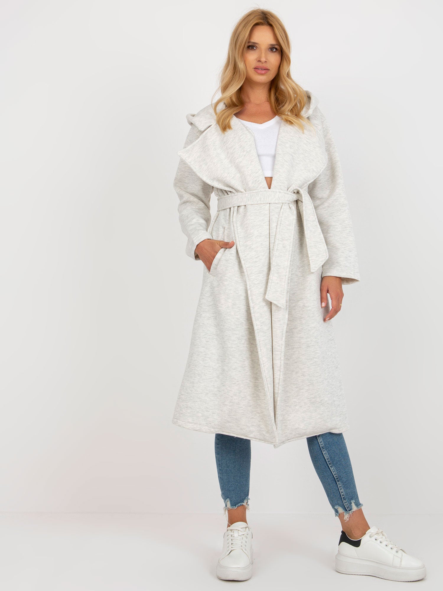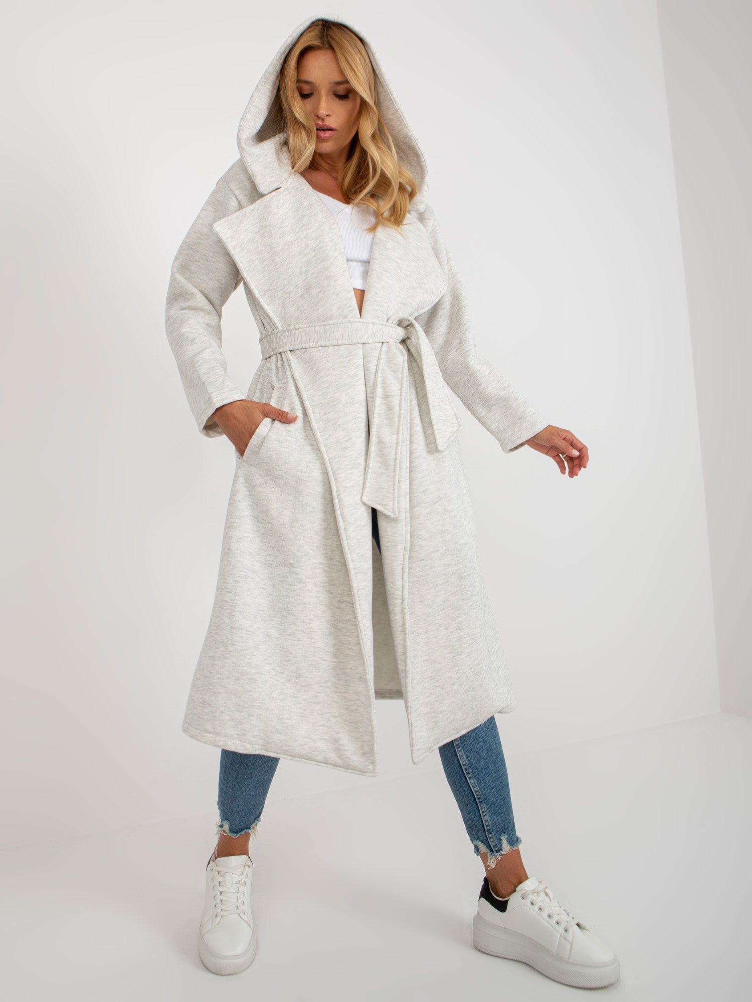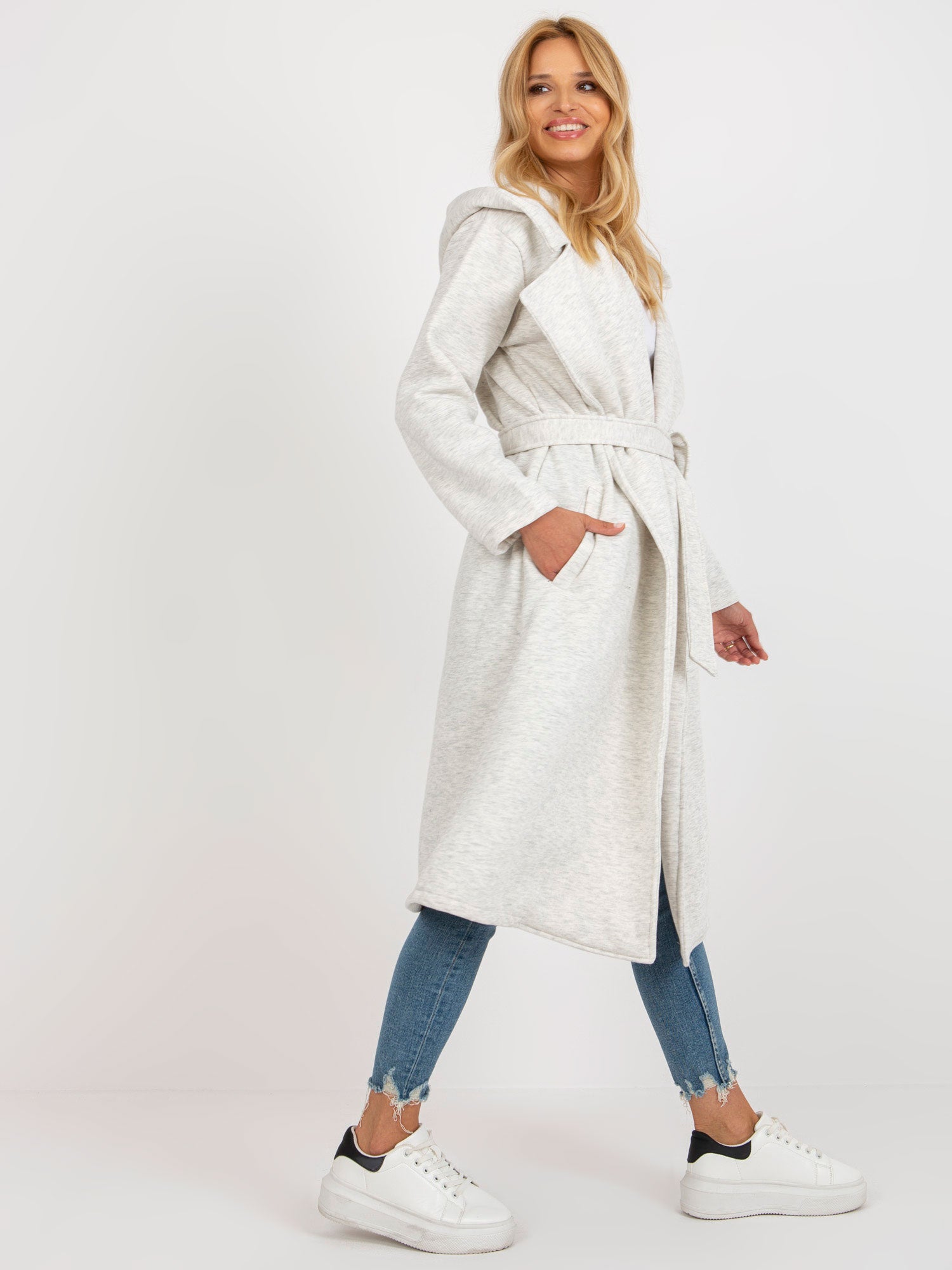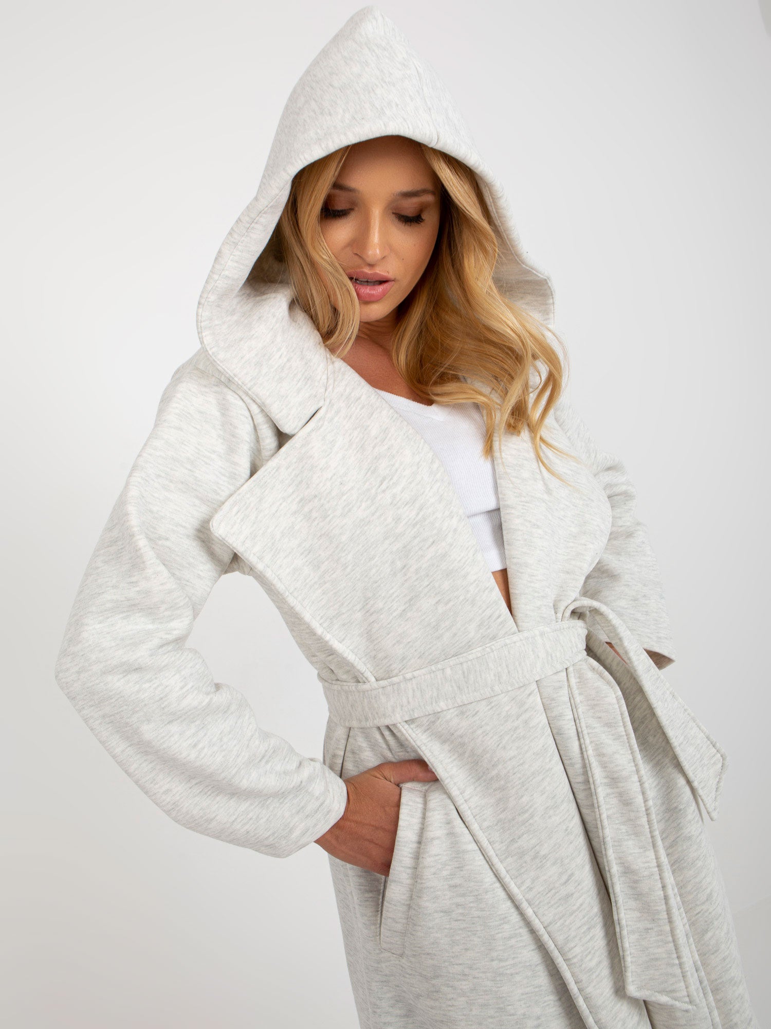 Jasnoszary melanżowy płaszcz dresowy z paskiem .