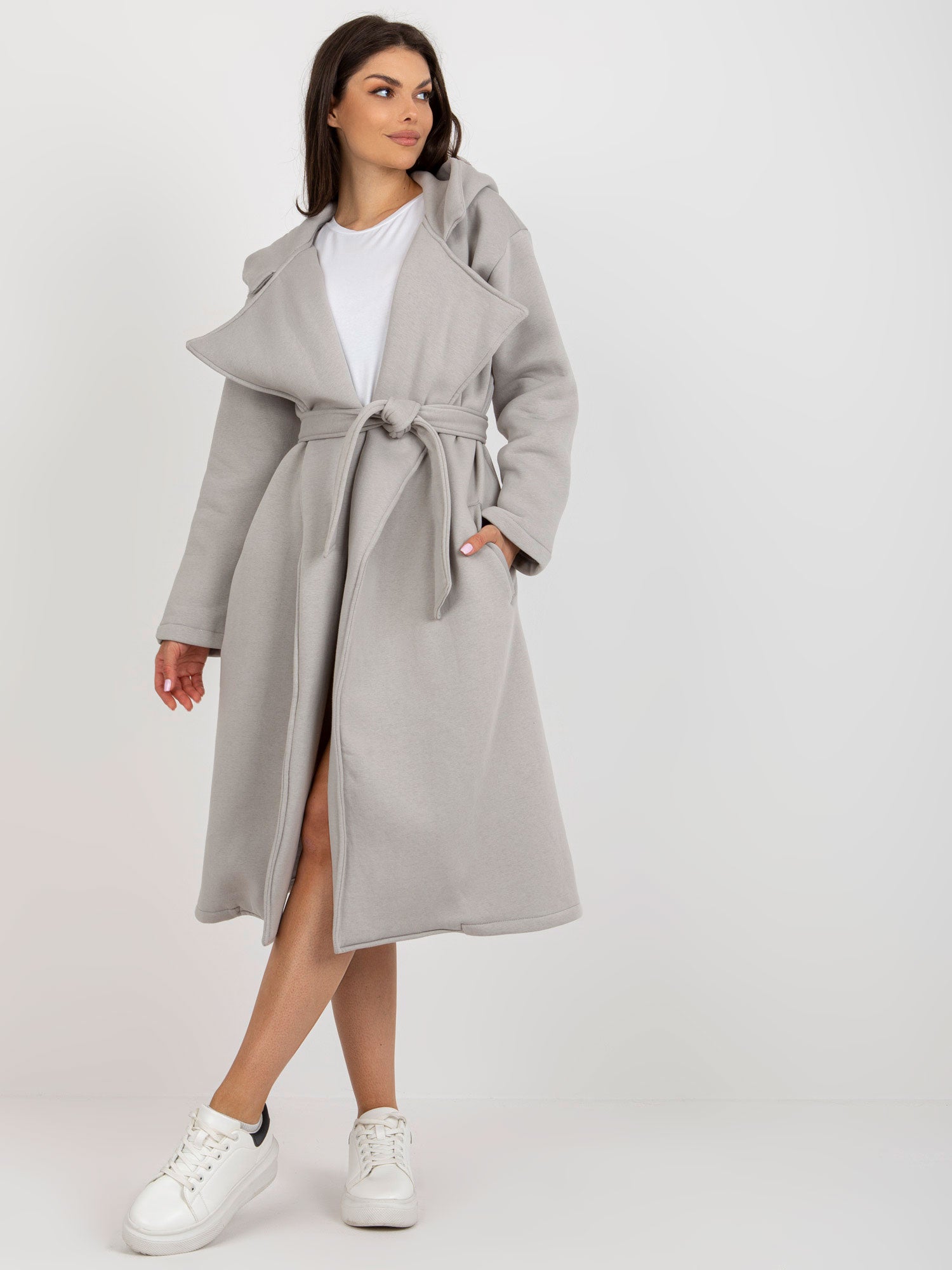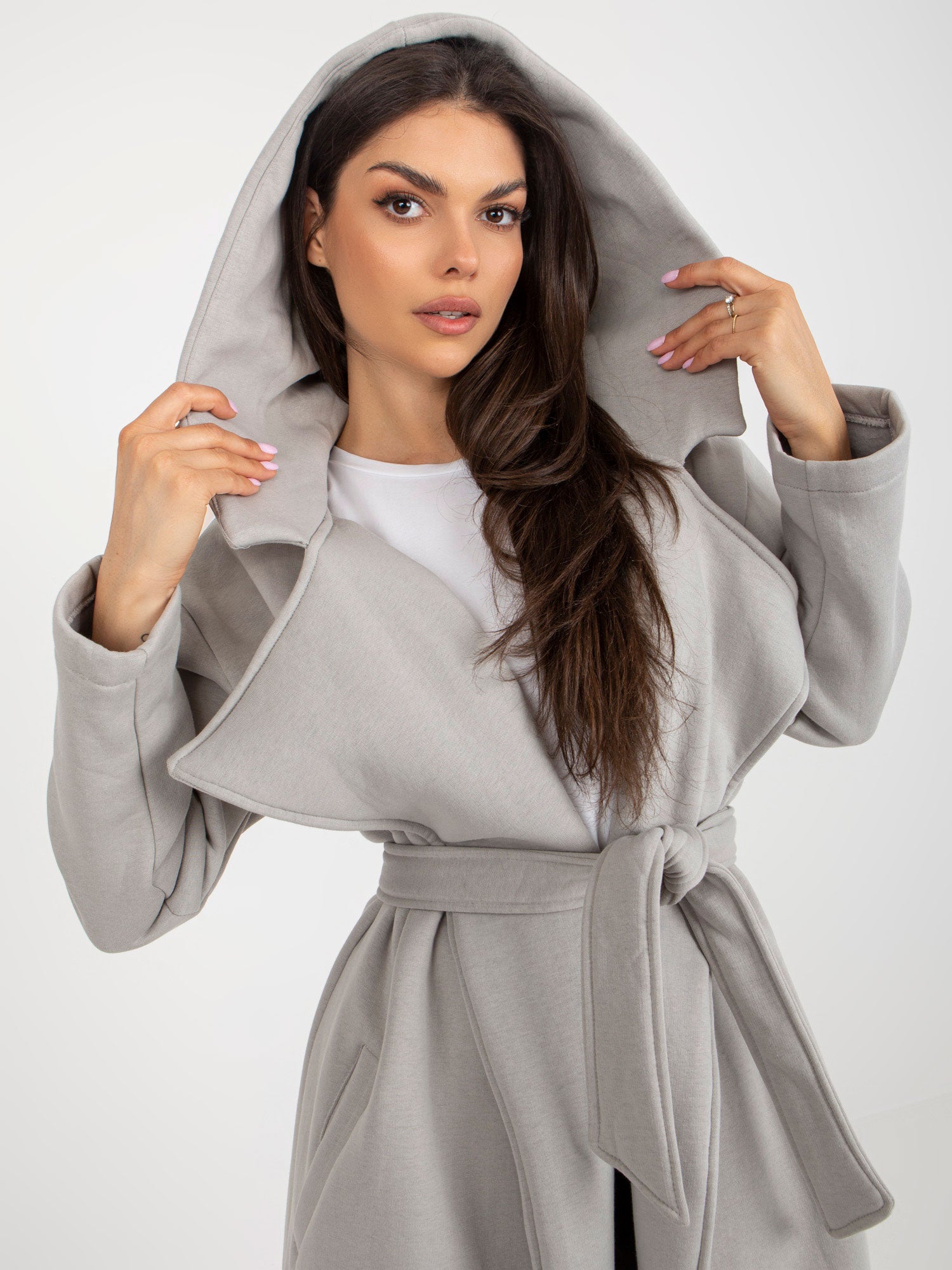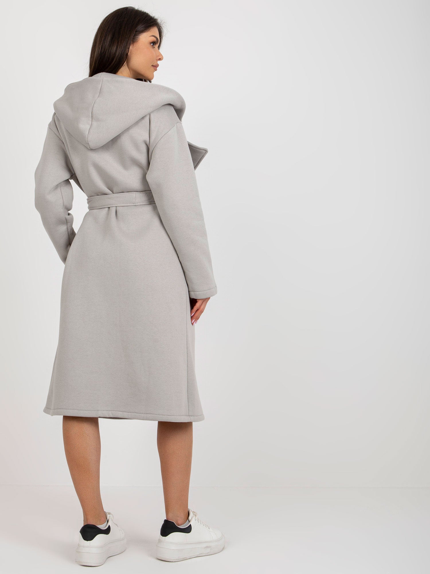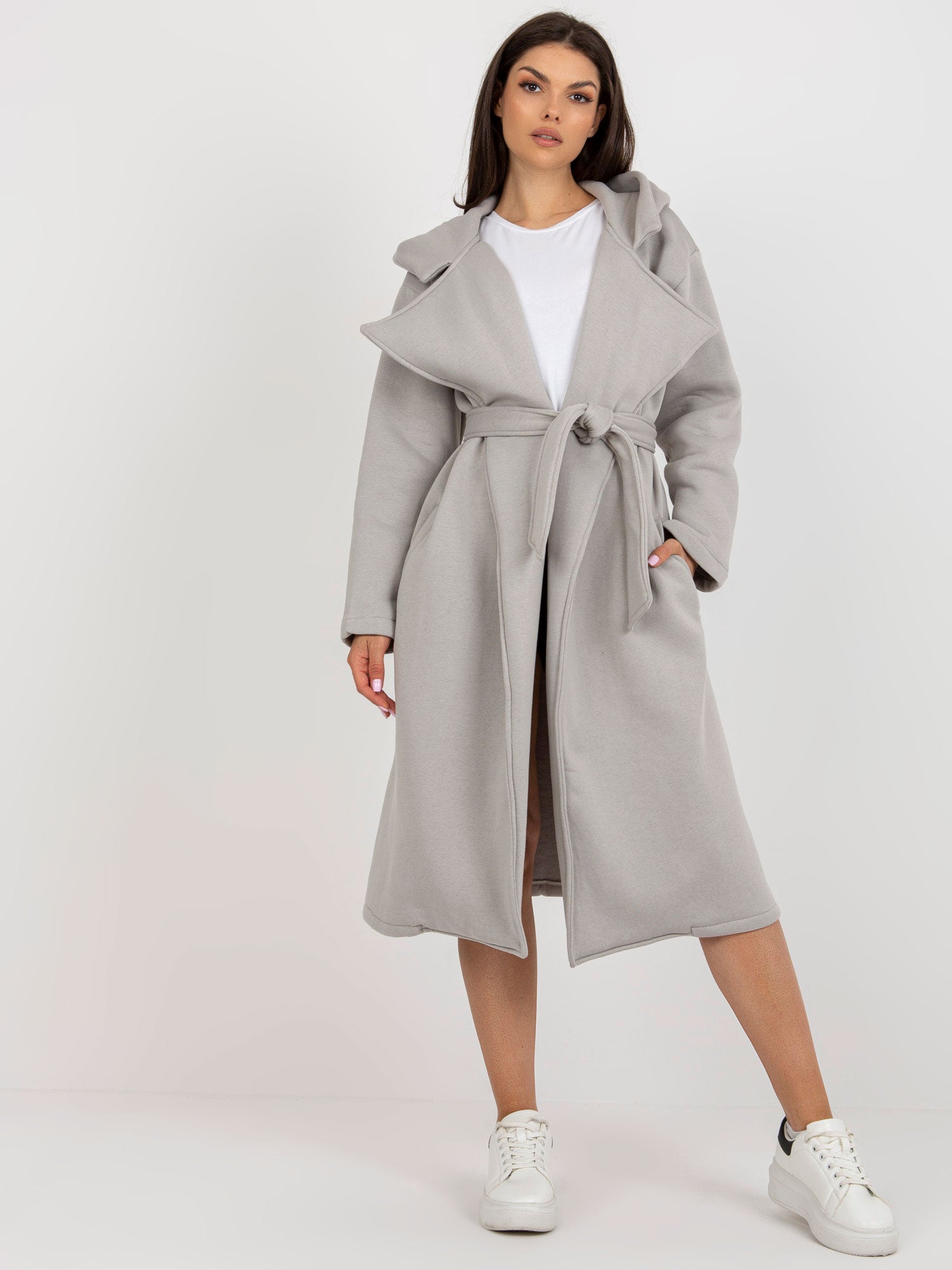 Wymiary płaszcza w rozmiarze one size mierzone na płasko: szerokość pod pachami - 62 cm, długość rękawa - 58 cm, długość całkowita - 112 cm.