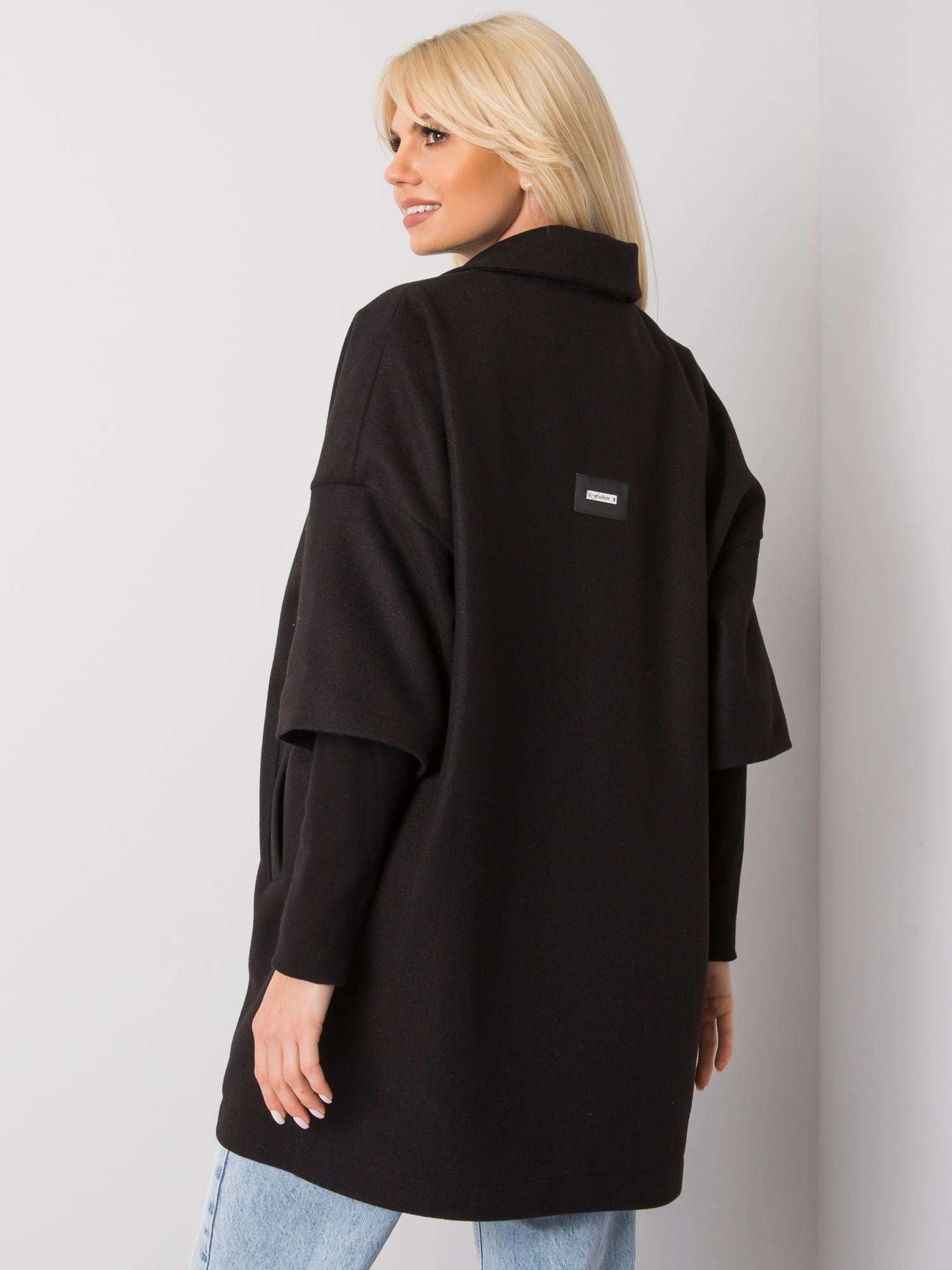 RUE PARIS Czarny płaszcz oversize Modny płaszcz o kroju oversize. Wyprodukowany w Polsce.