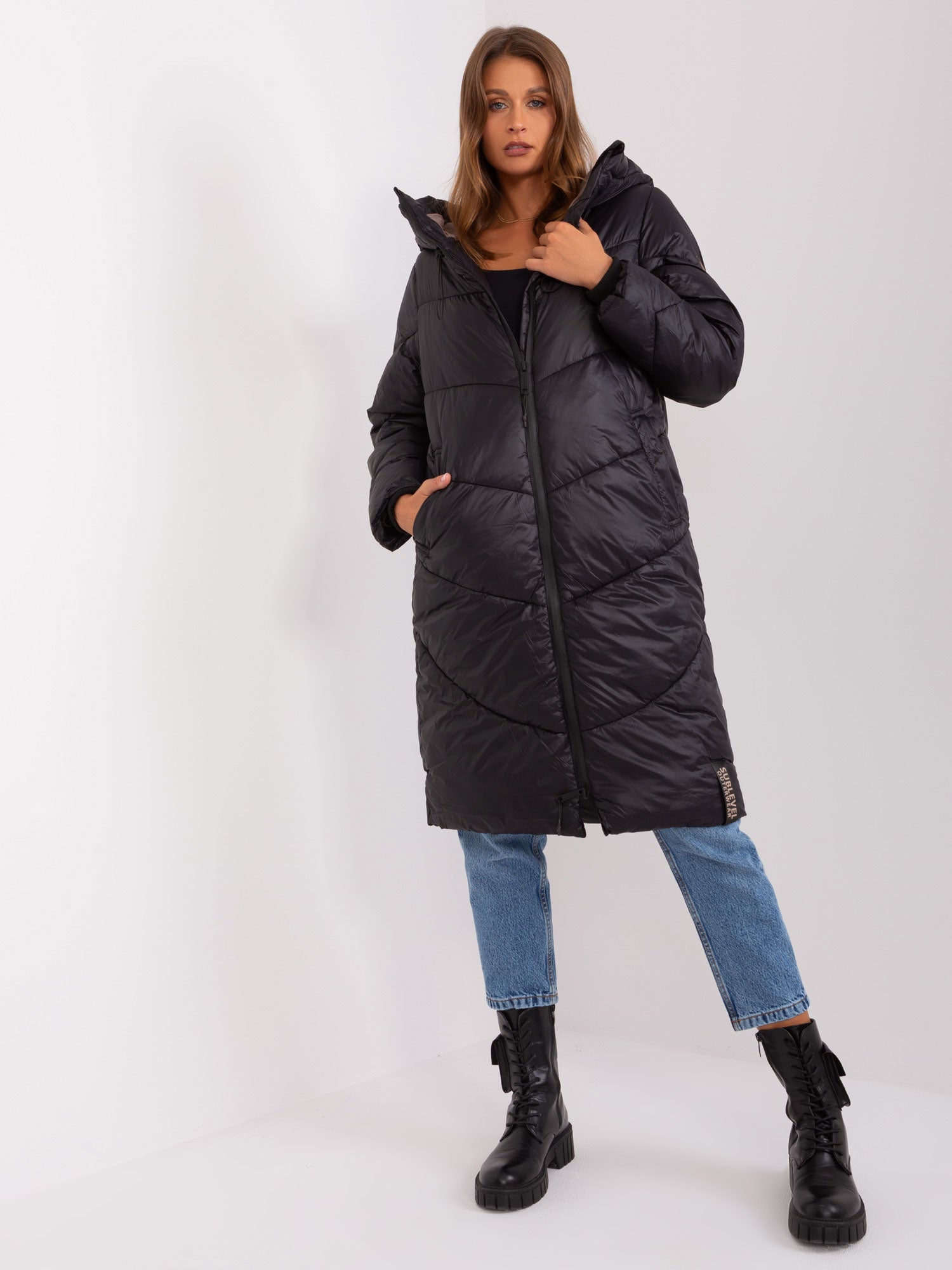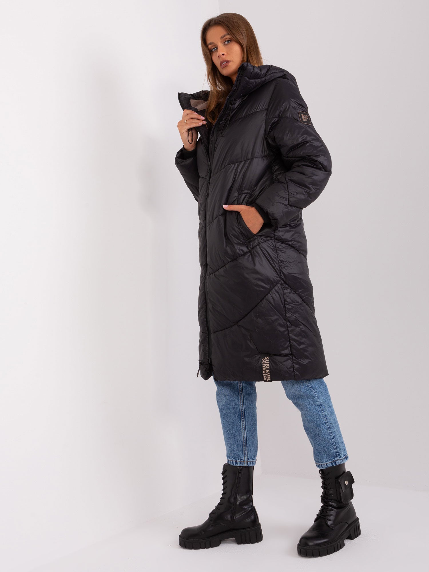 Czarna pikowana kurtka zimowa SUBLEVEL .