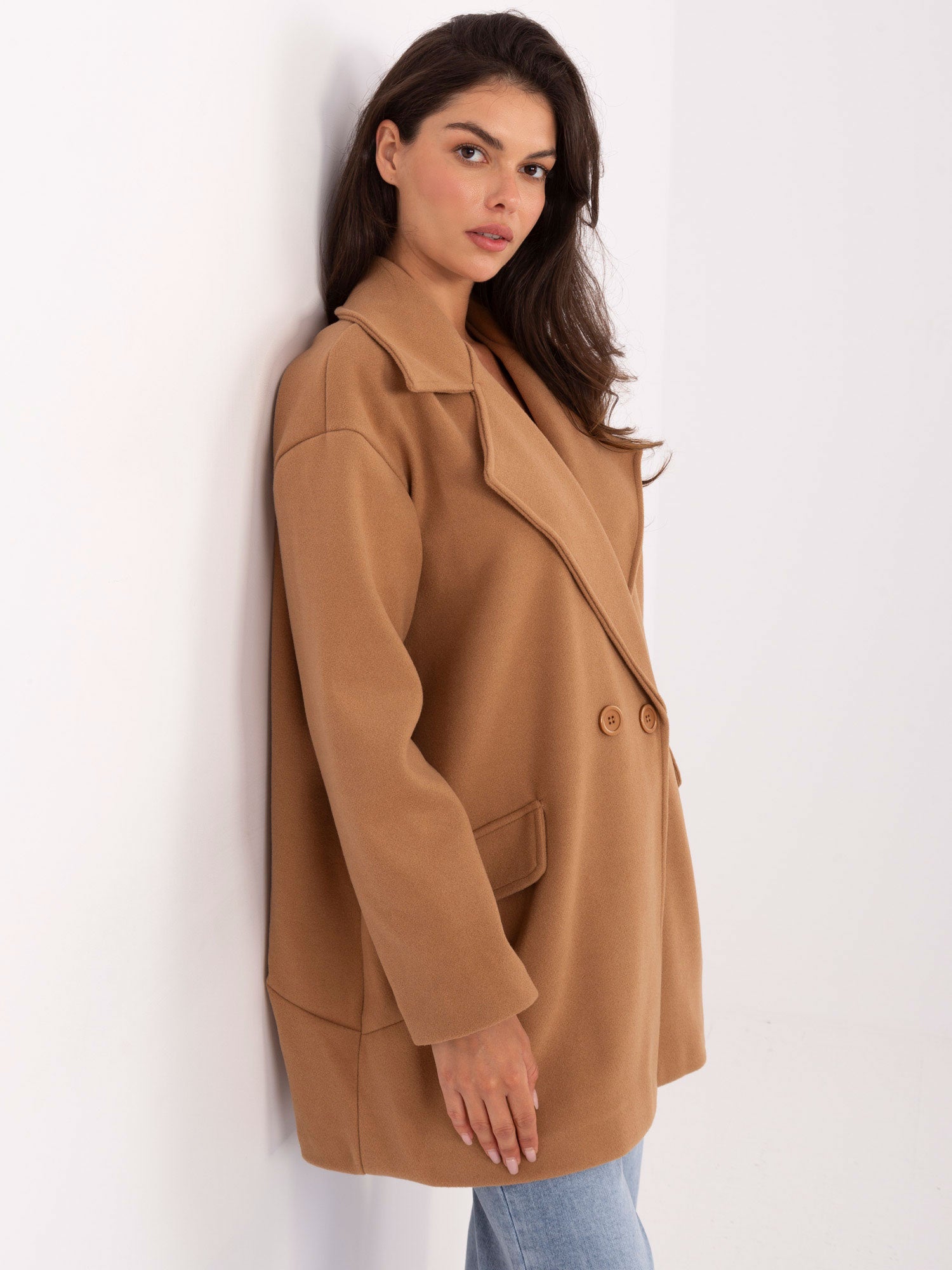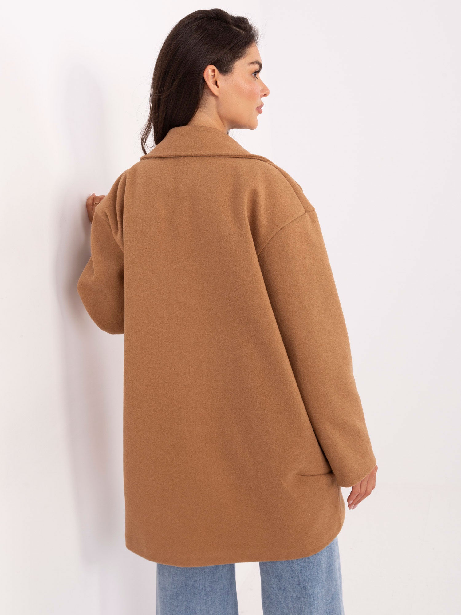 Wymiary płaszcza w rozmiarze one size mierzone na płasko: szerokość pod pachami - 58 cm, długość rękawa - 53 cm (od szwu), szerokość w biodrach - 62 cm, długość całkowita - 82 cm.