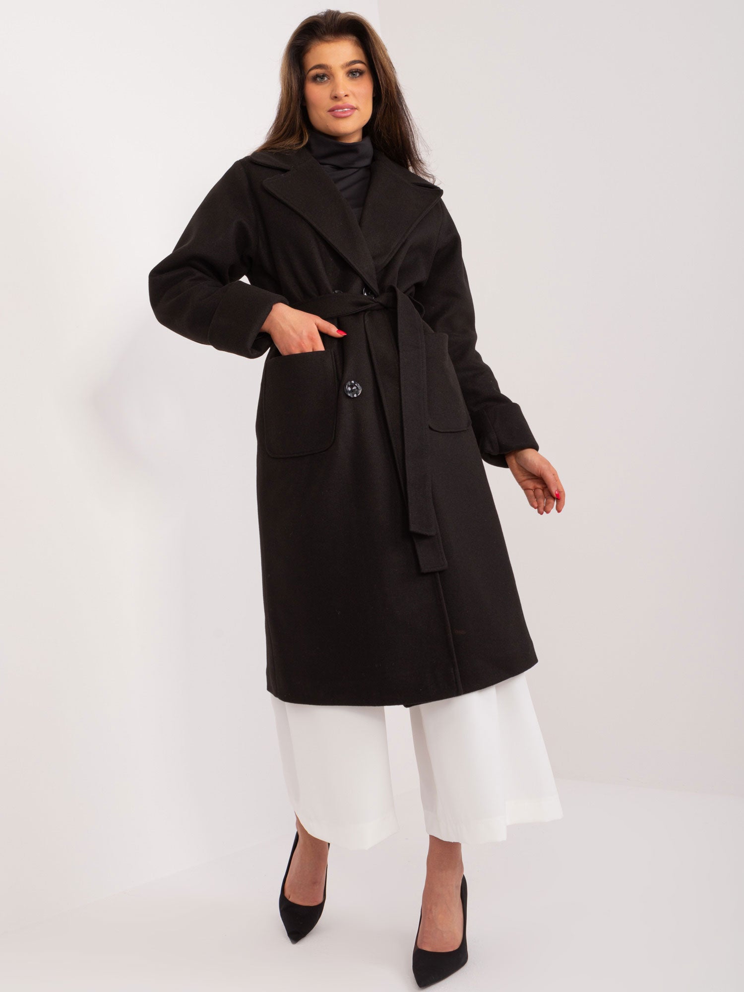 Wymiary płaszcza w rozmiarze S/M mierzone na płasko: szerokość pod pachami - 56 cm, długość całkowita - 112 cm, długość rękawa - 69 cm.