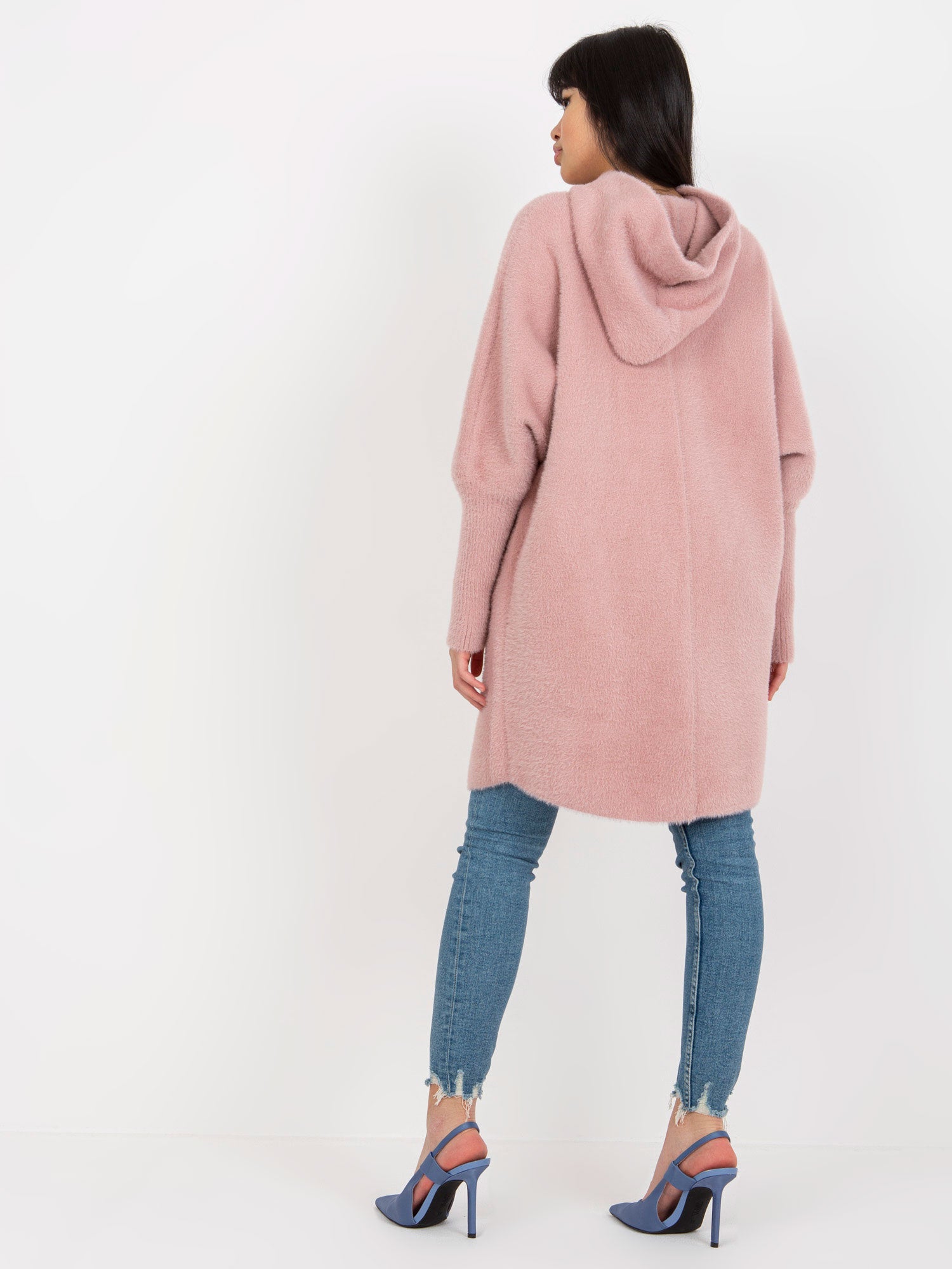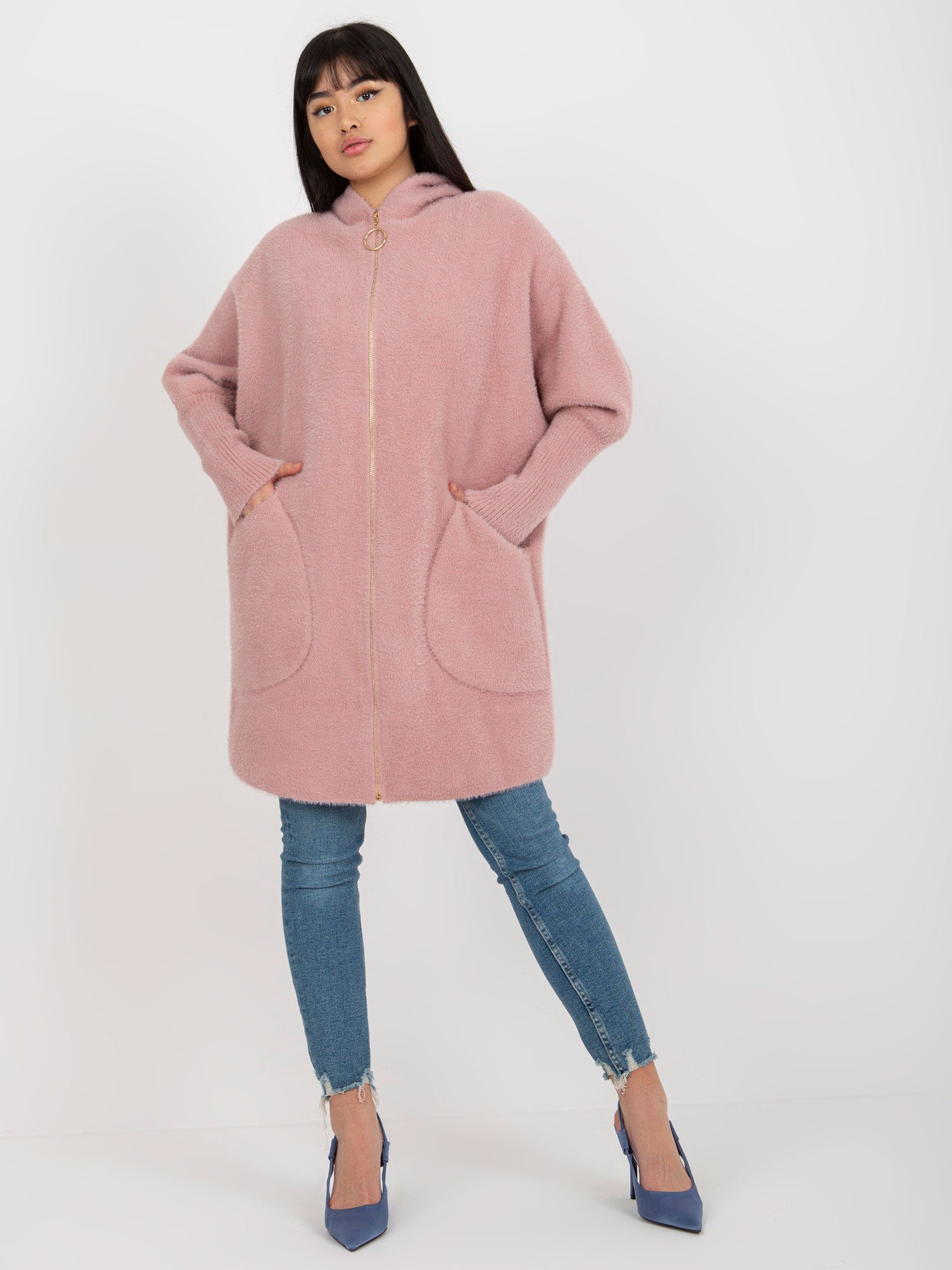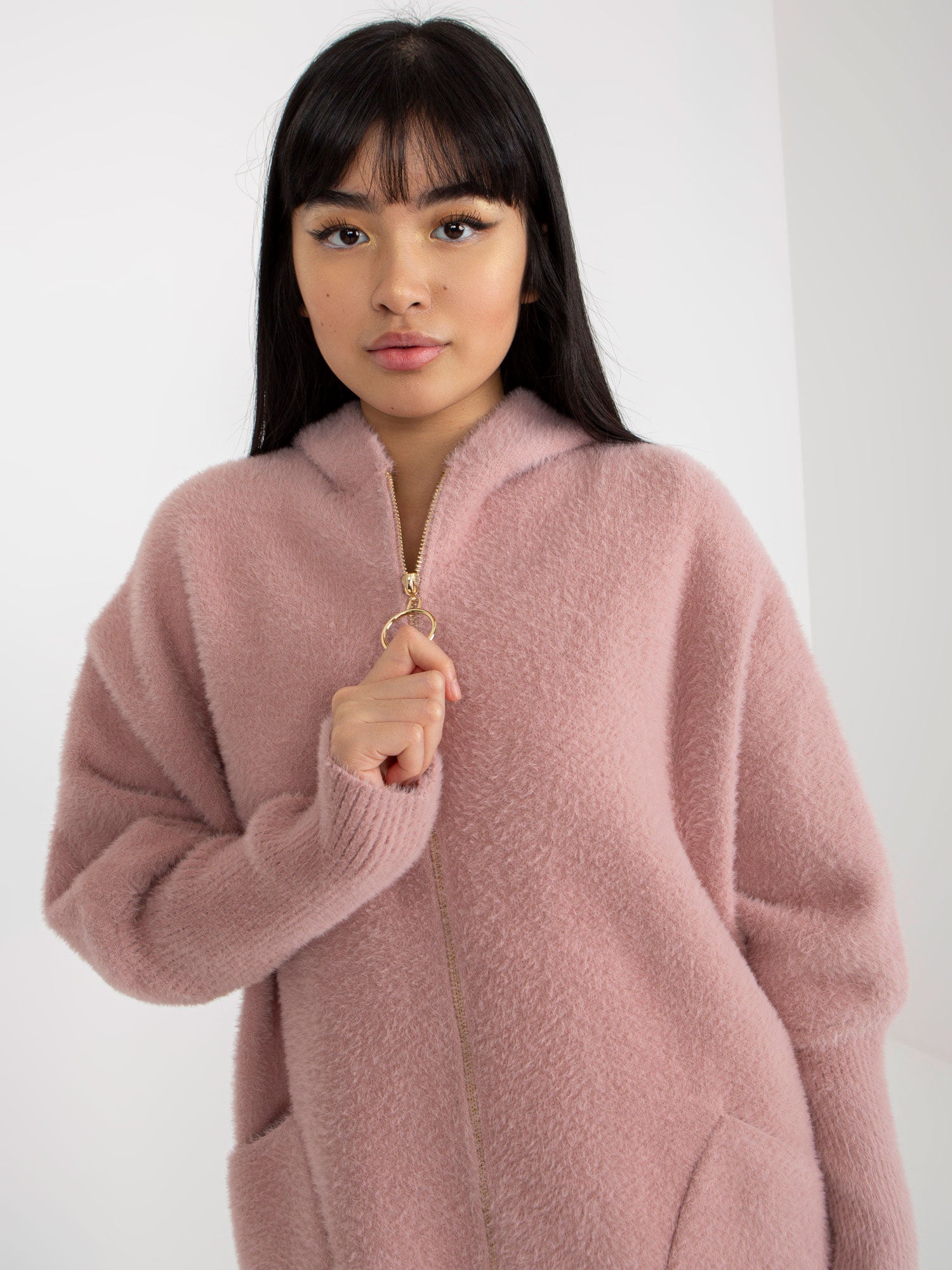 Brudnoróżowy luźny płaszcz alpaka z suwakiem .