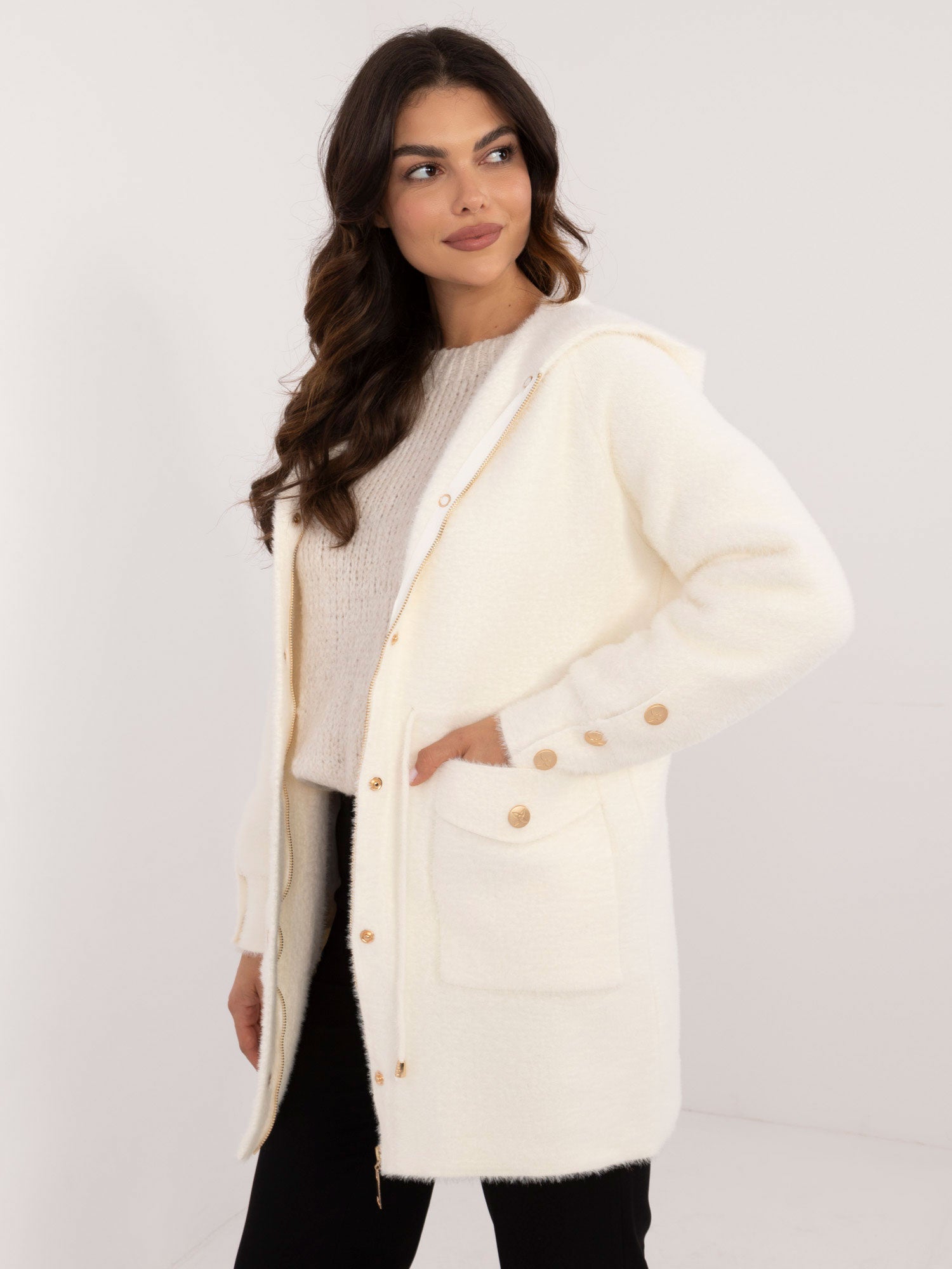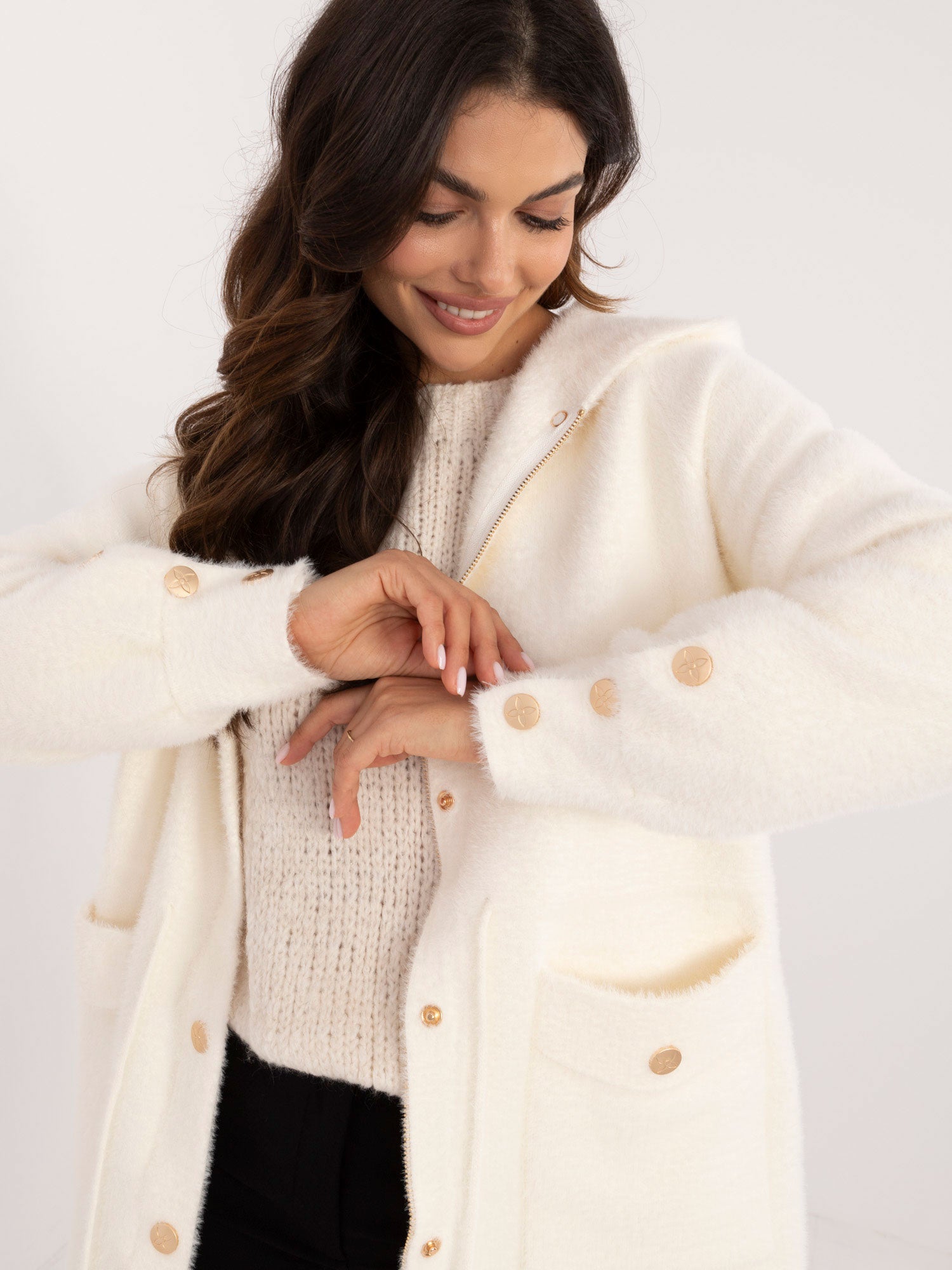 Wymiary płaszcza w rozmiarze one size mierzone na płasko: szerokość pod pachami - 55 cm, długość całkowita - 79 cm, długość rękawa - 61 cm