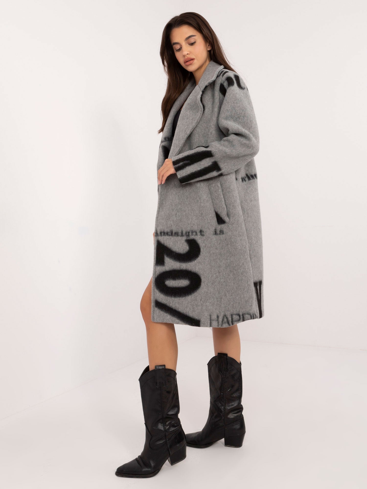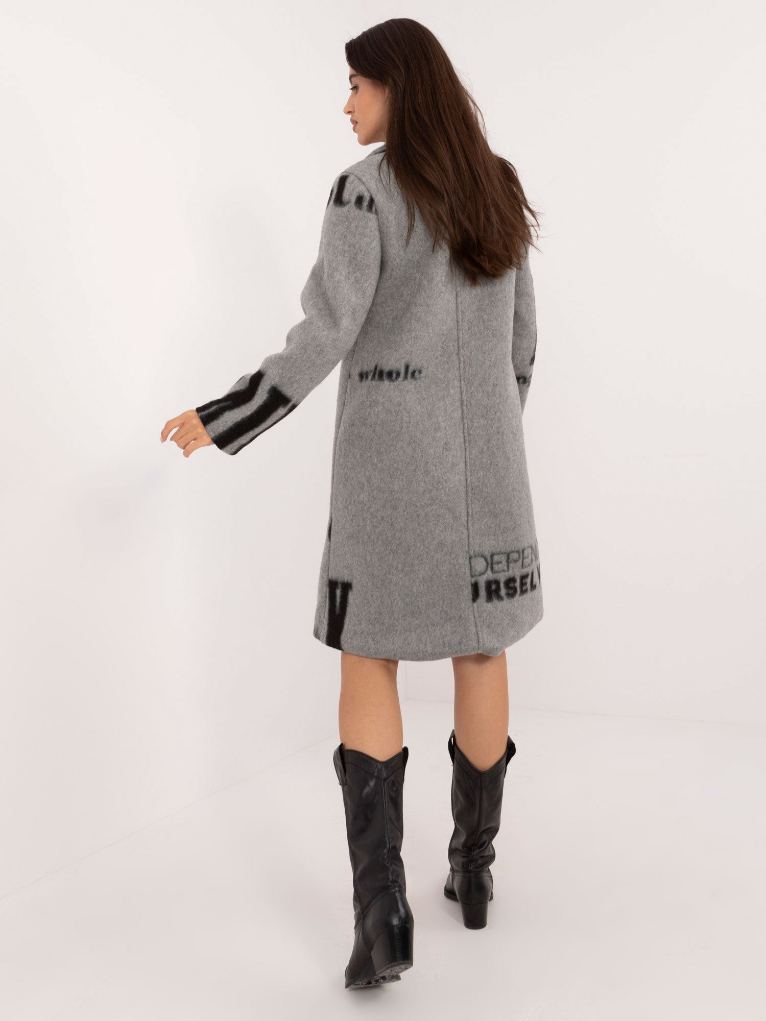 Wymiary płaszcza w rozmiarze one size mierzone na płasko: szerokość pod pachami - 52 cm, długość rękawa - 61 cm, długość całkowita - 103 cm.