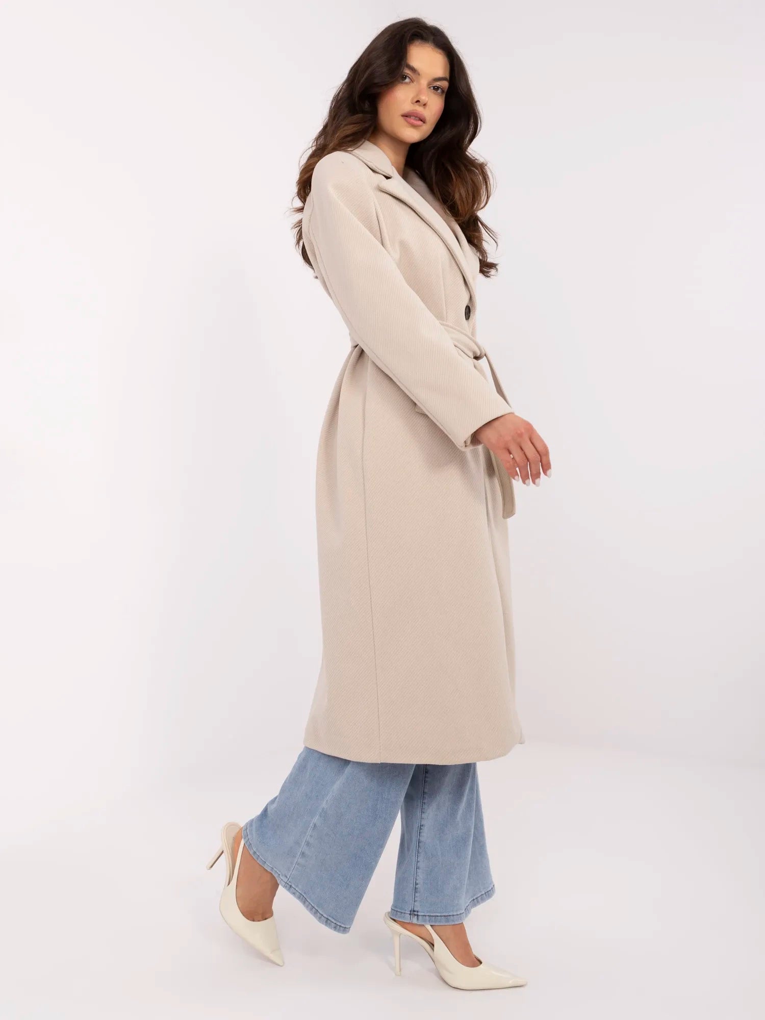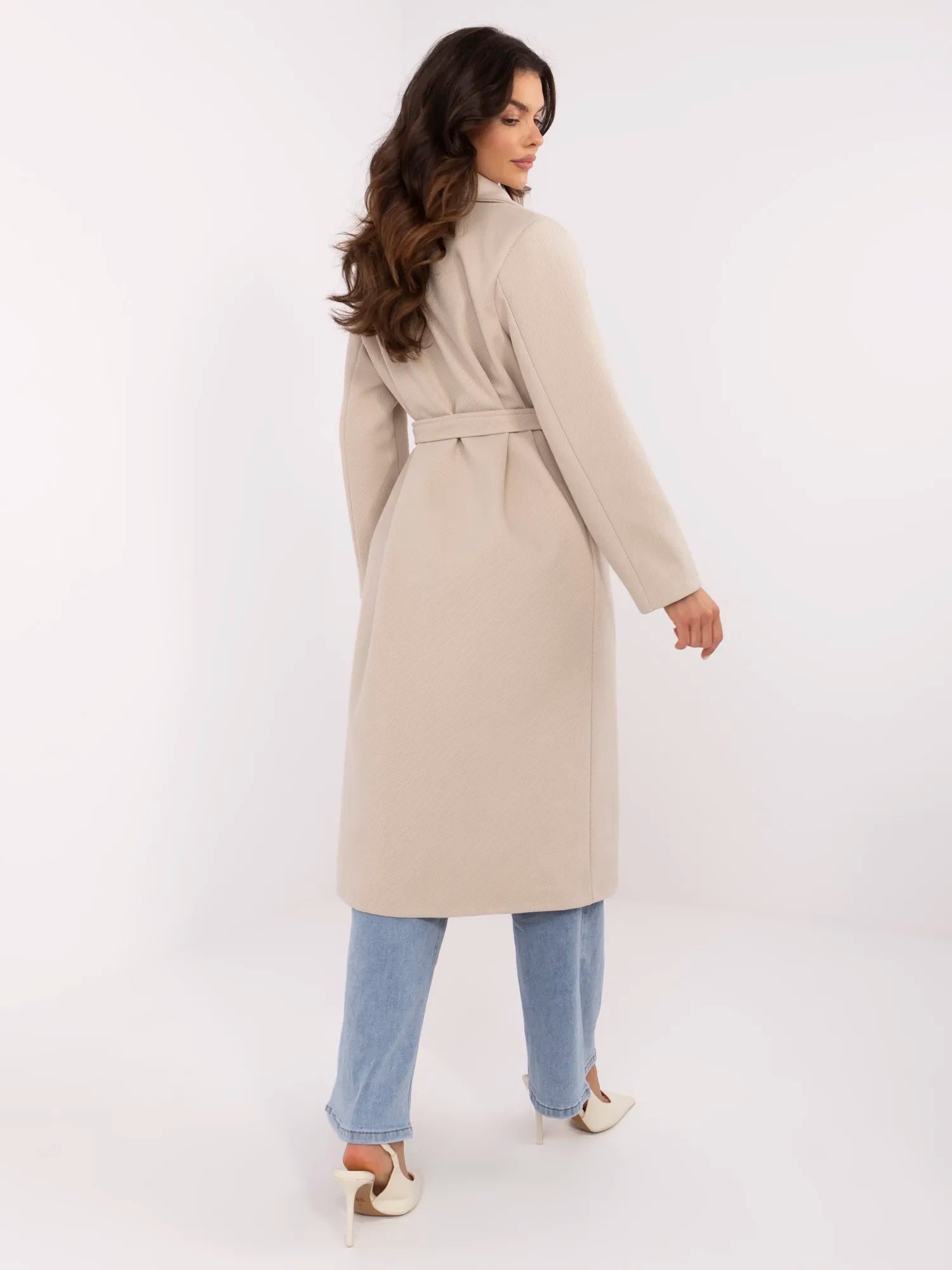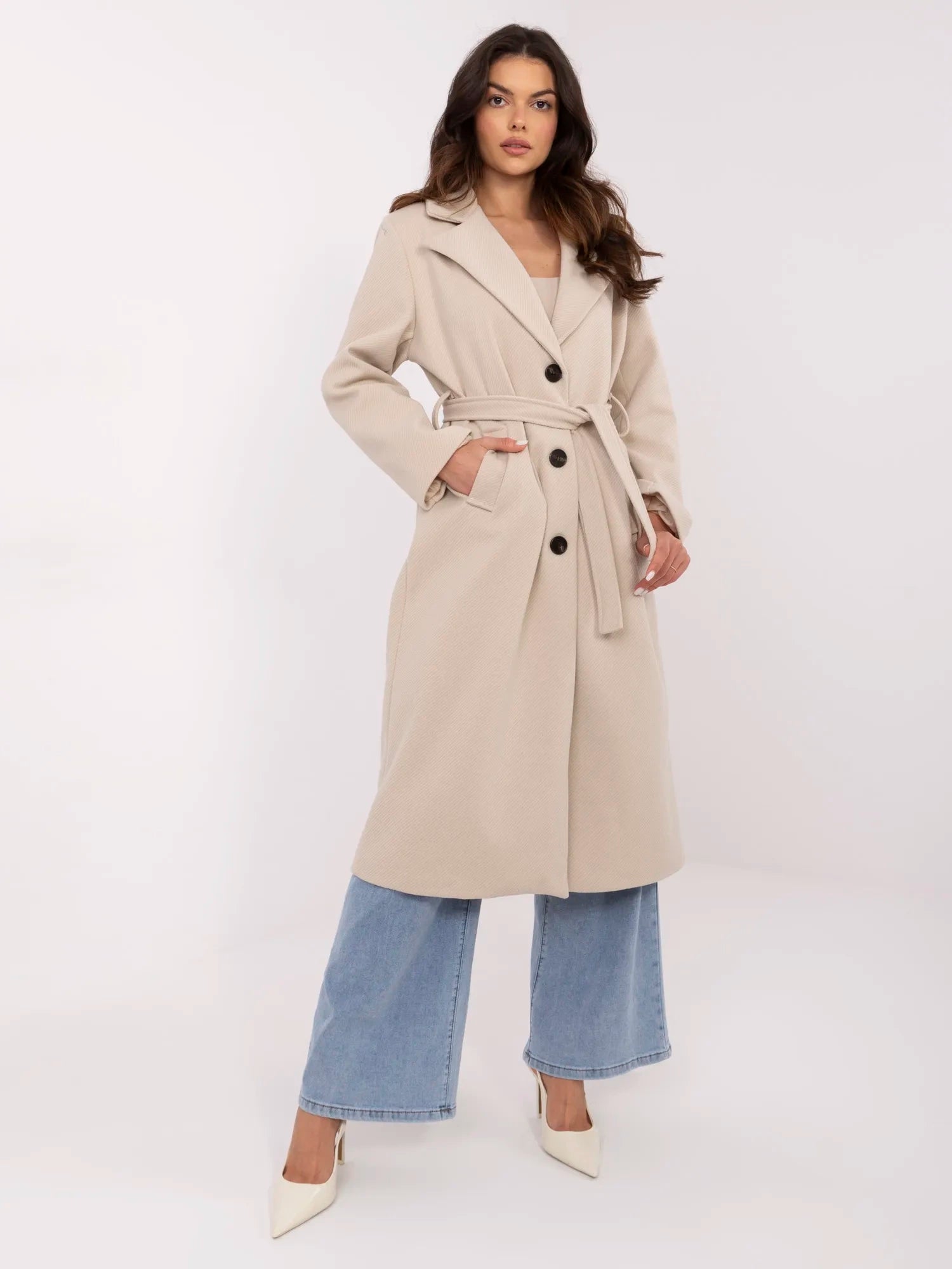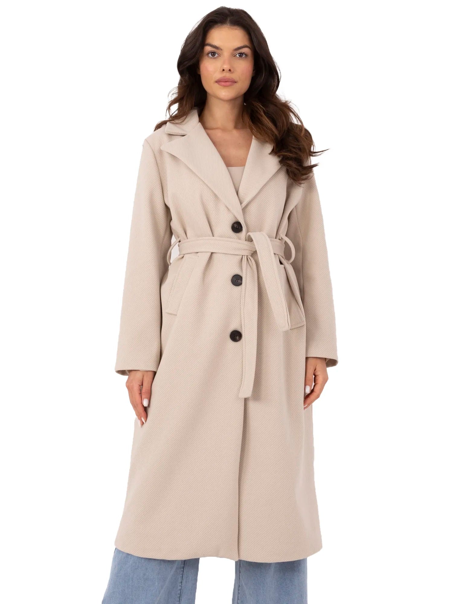 Wymiary płaszcza w rozmiarze one size mierzone na płasko: szerokość pod pachami - 56 cm, długość rękawa - 58 cm (od szwu), szerokość w biodrach - 59 cm, długość całkowita - 114 cm.