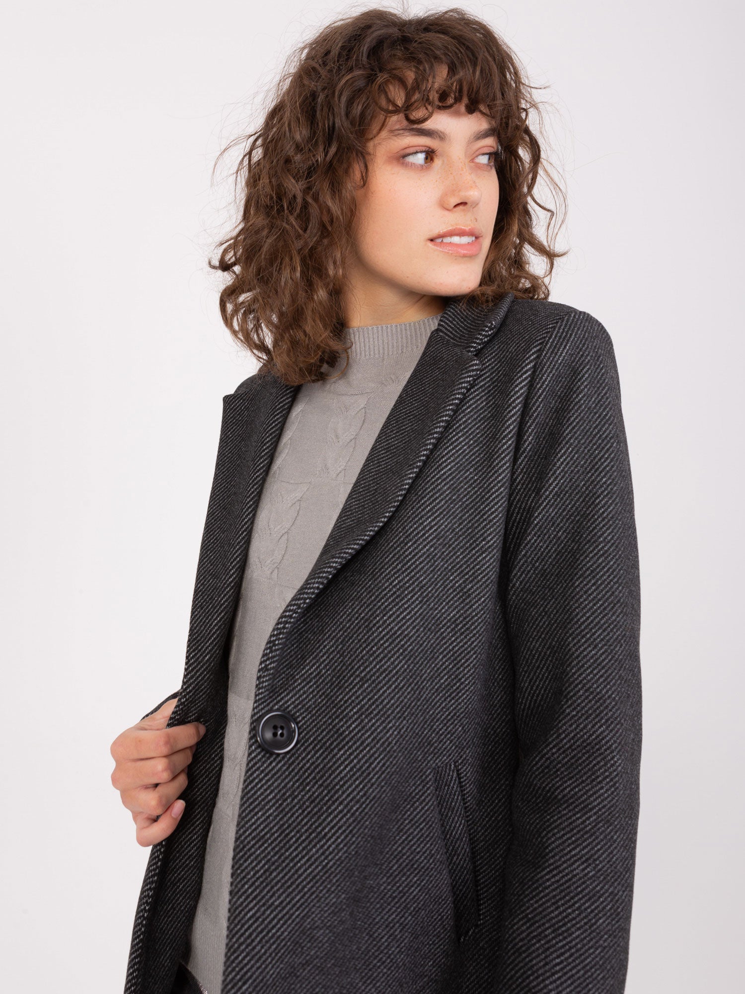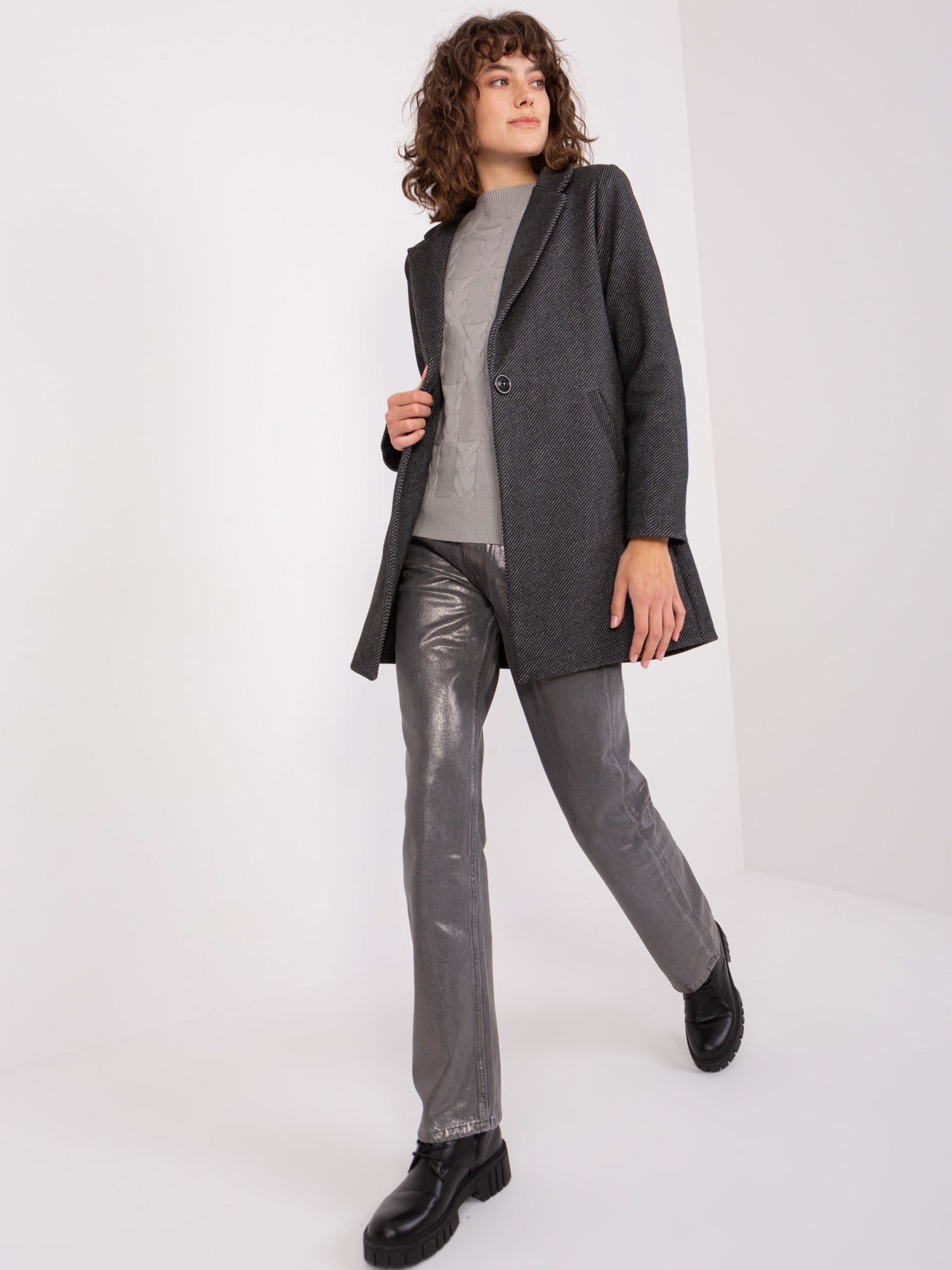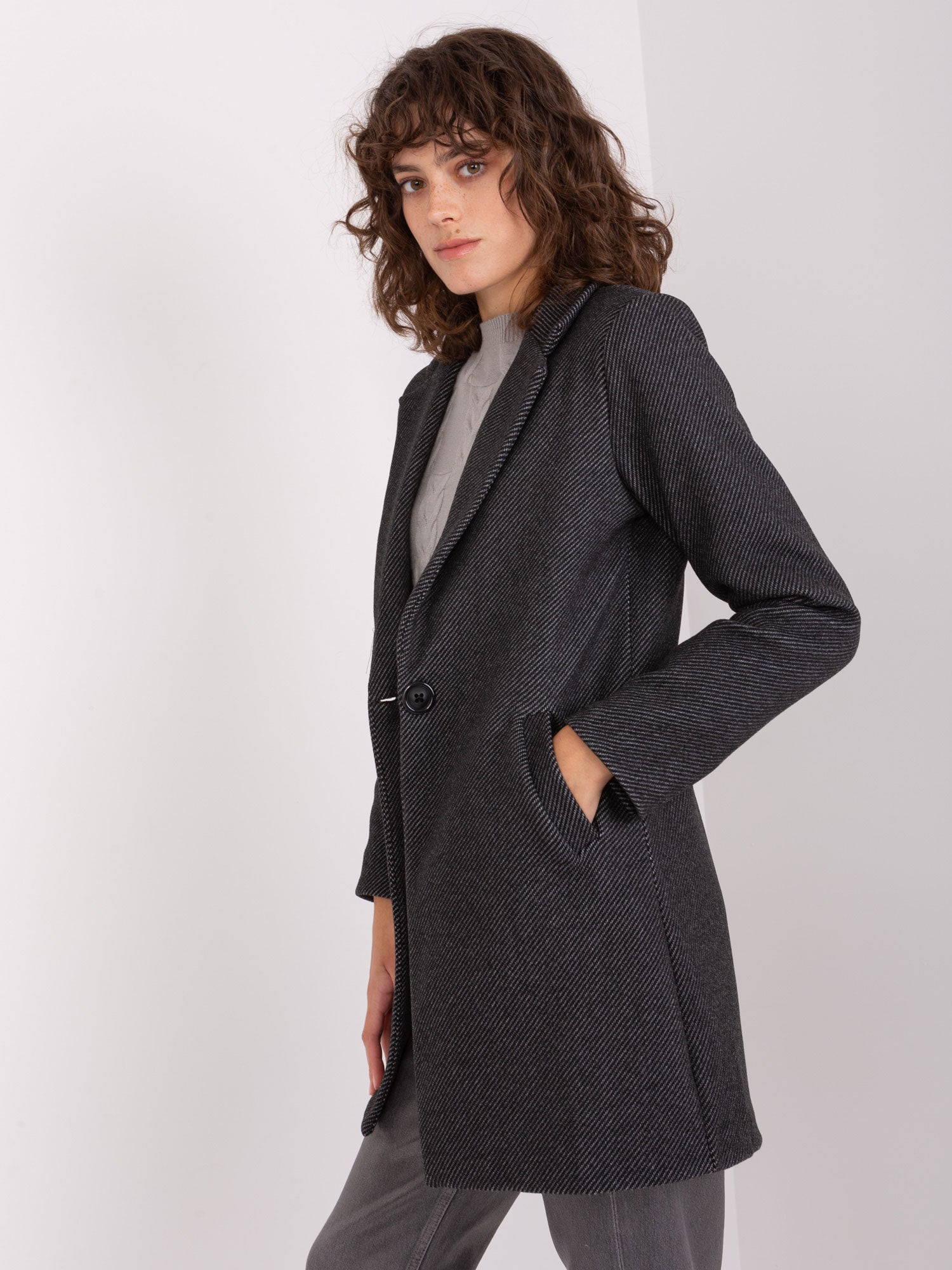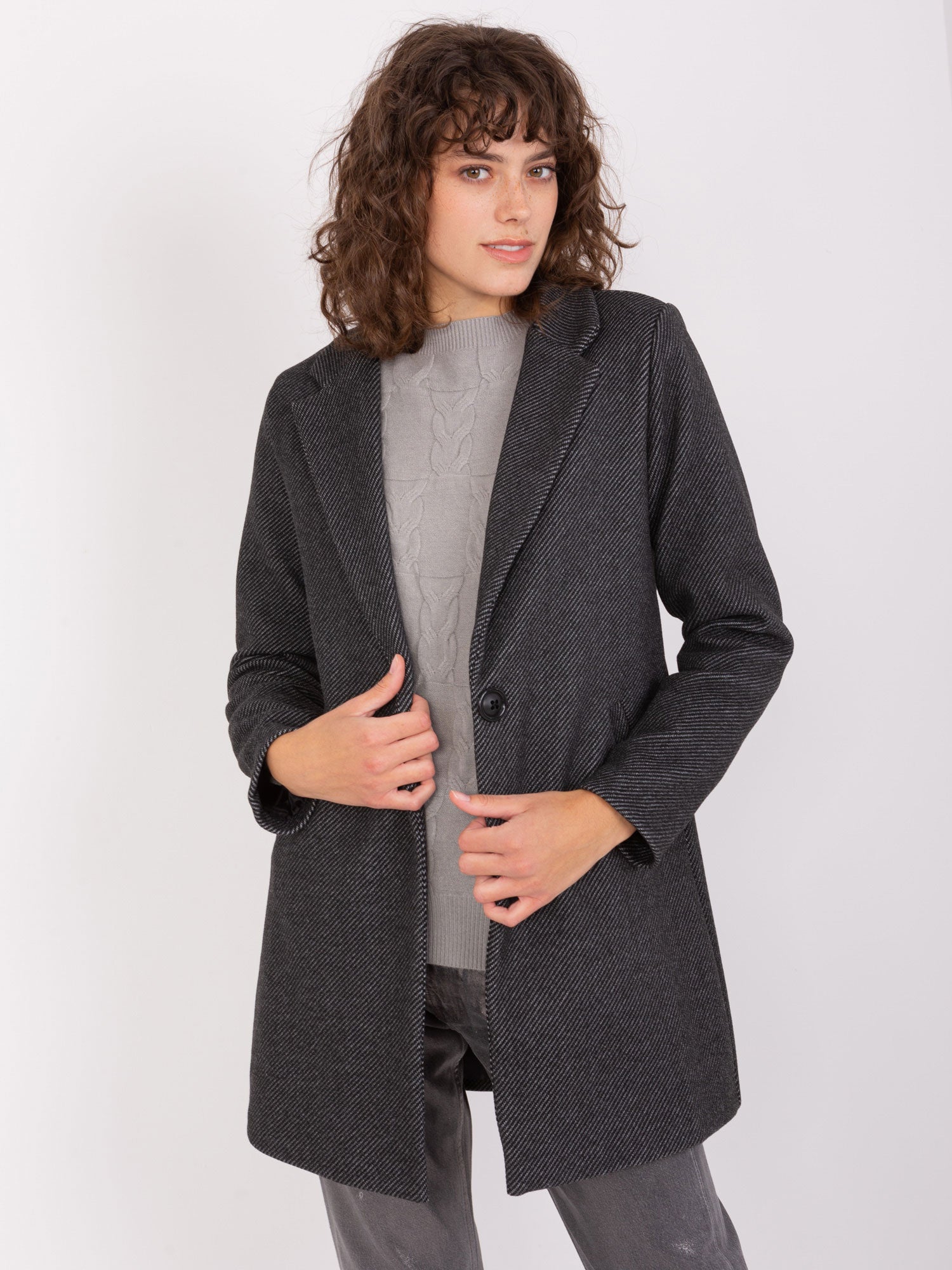 Czarny jednorzędowy płaszcz damski OCH BELLA.