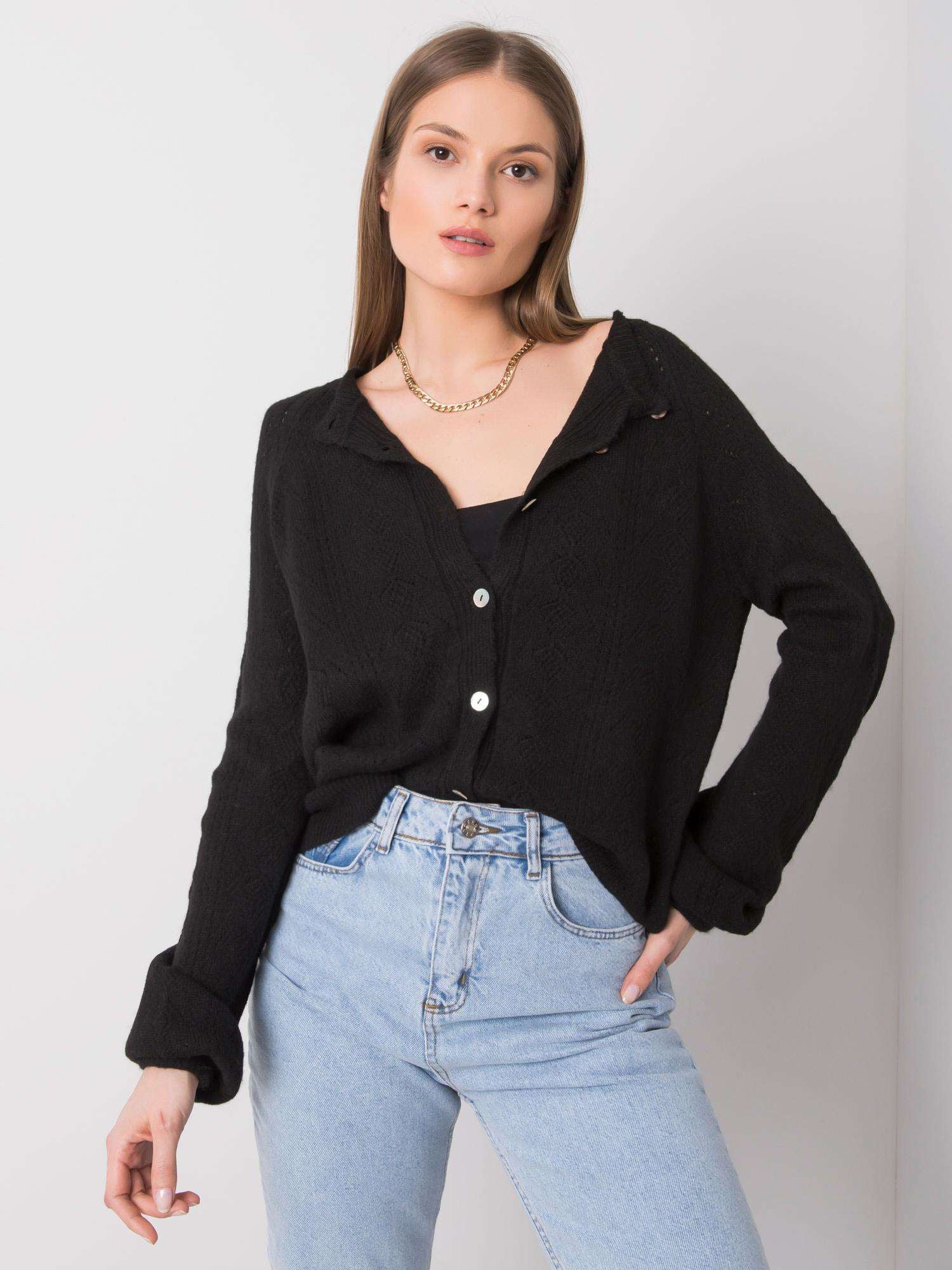 RUE PARIS Czarny sweter na guziki.