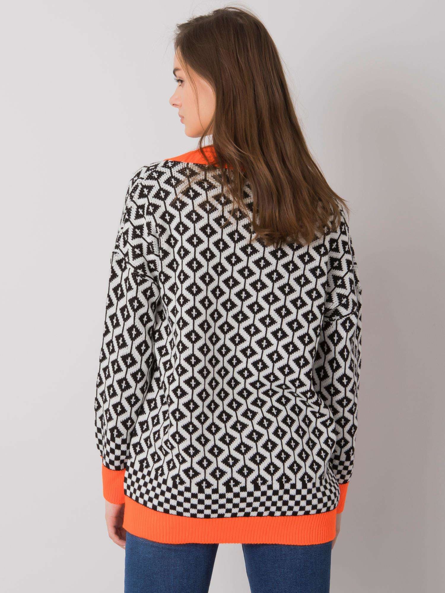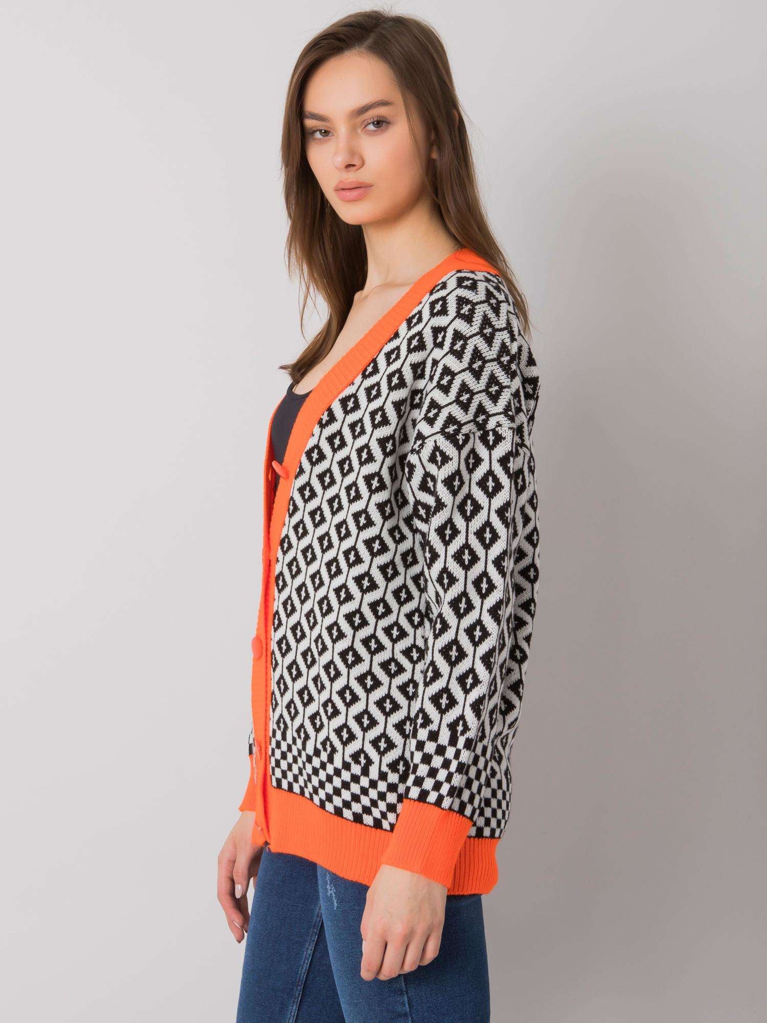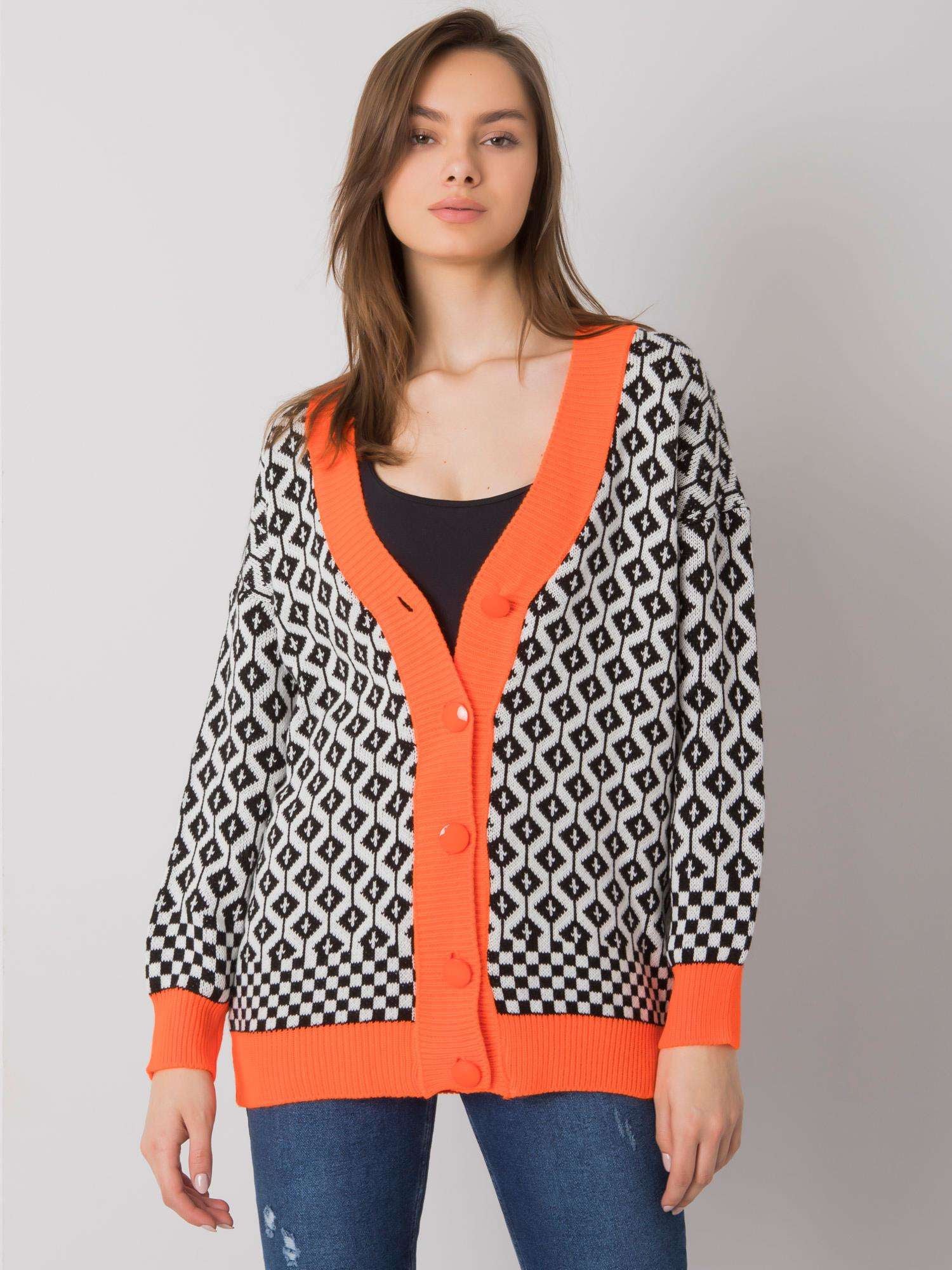 RUE PARIS Biało-pomarańczowy sweter na guziki.
