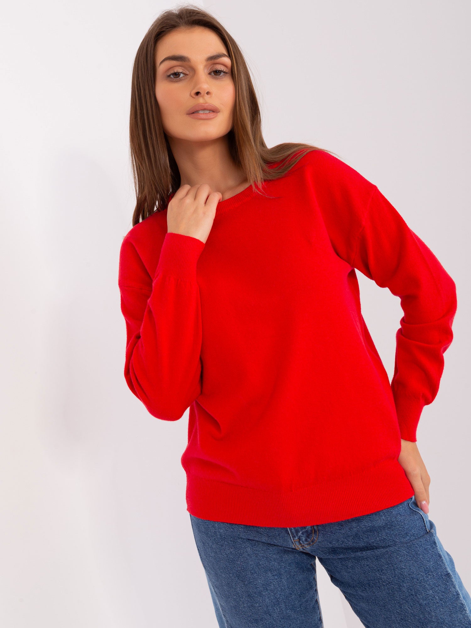 Czerwony sweter klasyczny z okrągłym dekoltem .