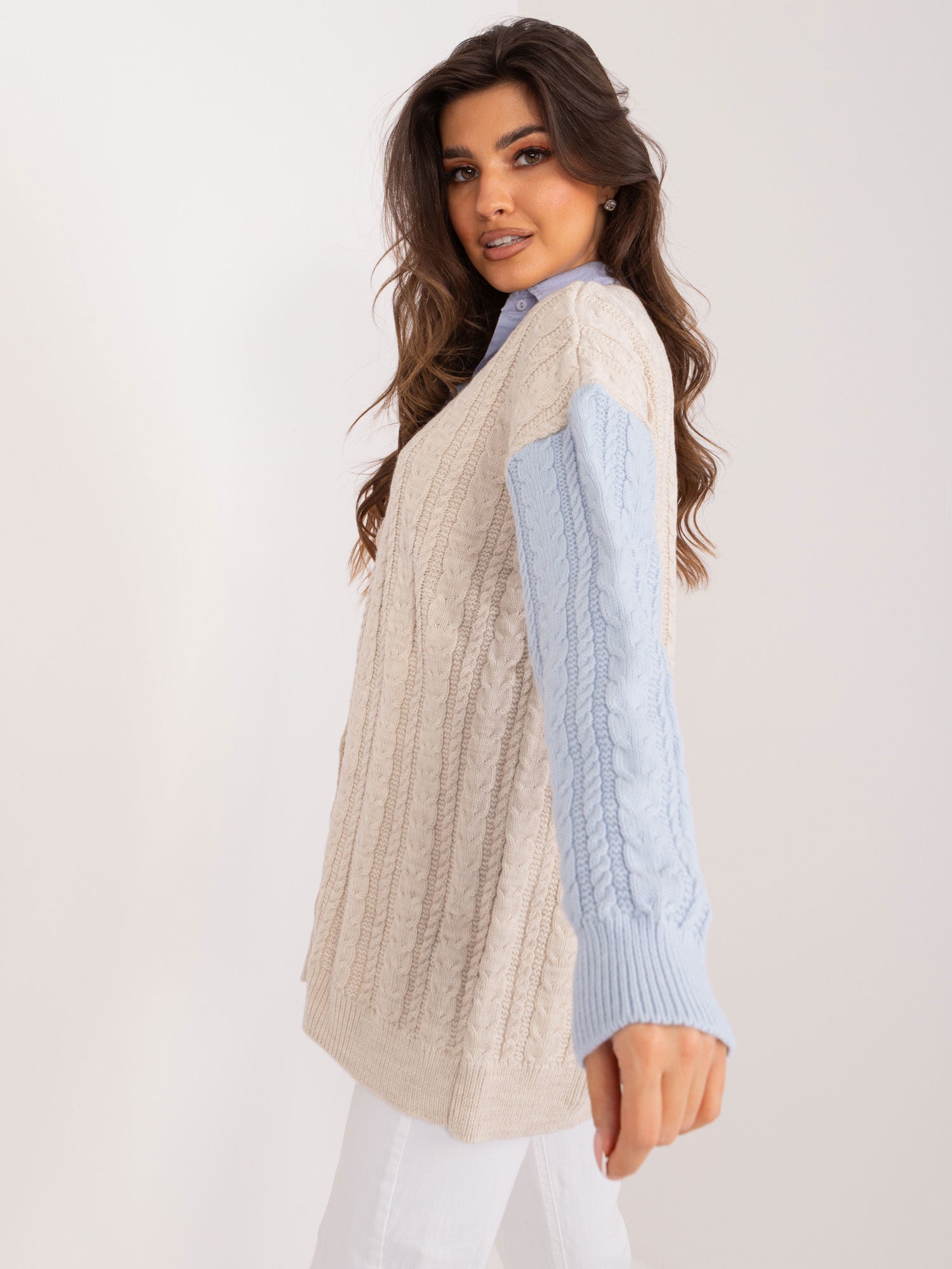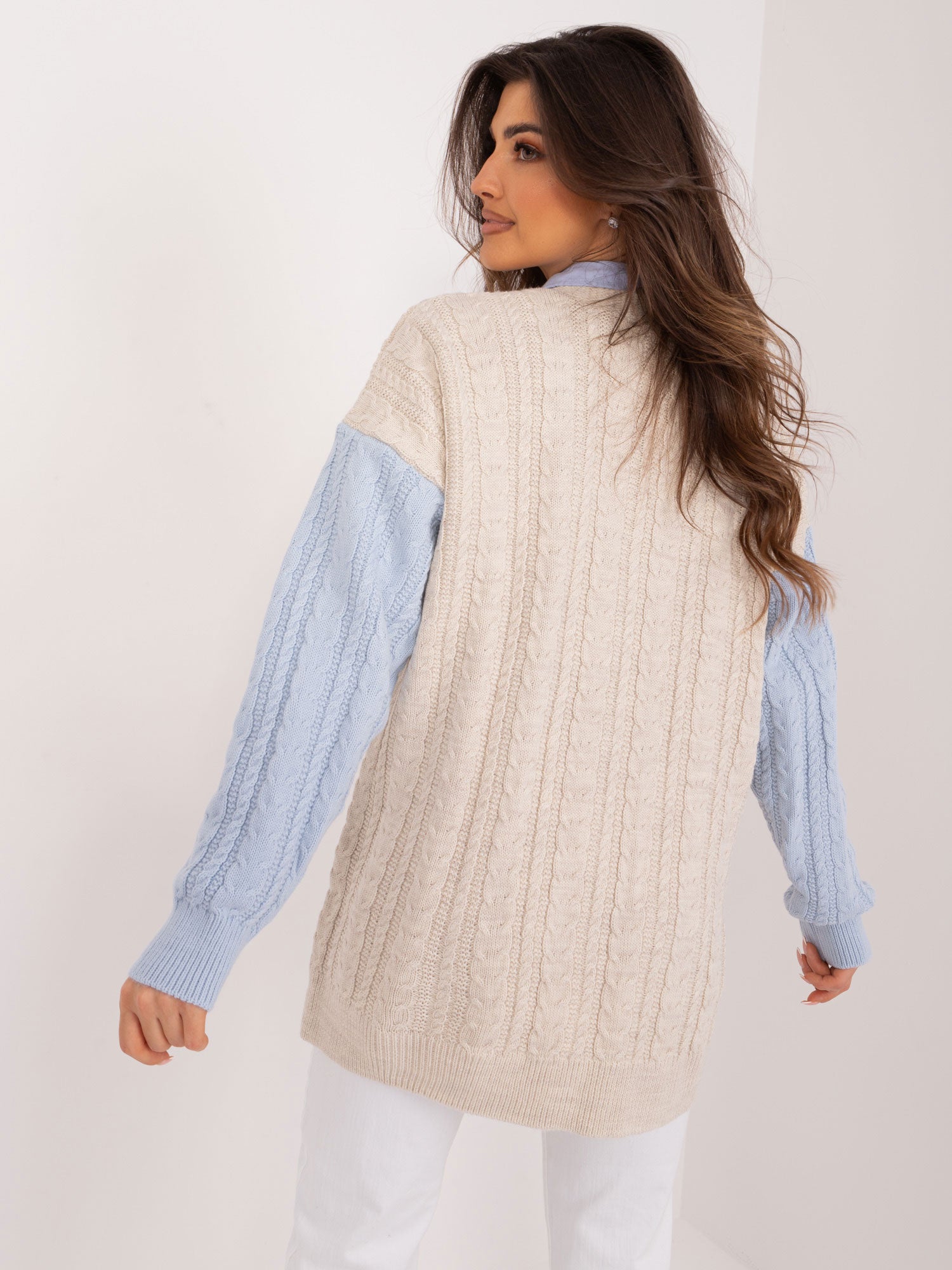 Wymiary swetra w rozmiarze one size mierzone na płasko: szerokość pod pachami - 65 cm, długość rękawa - 68 cm, długość całkowita - 78 cm.