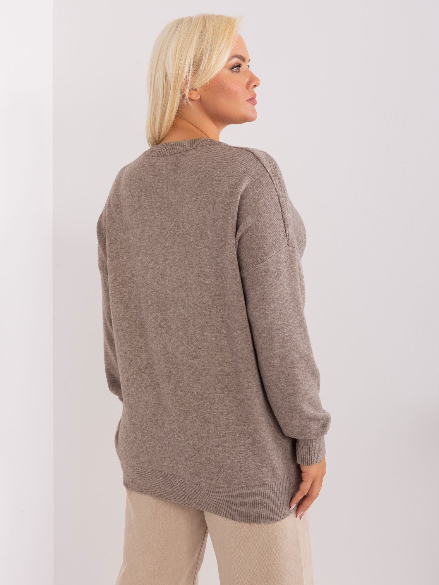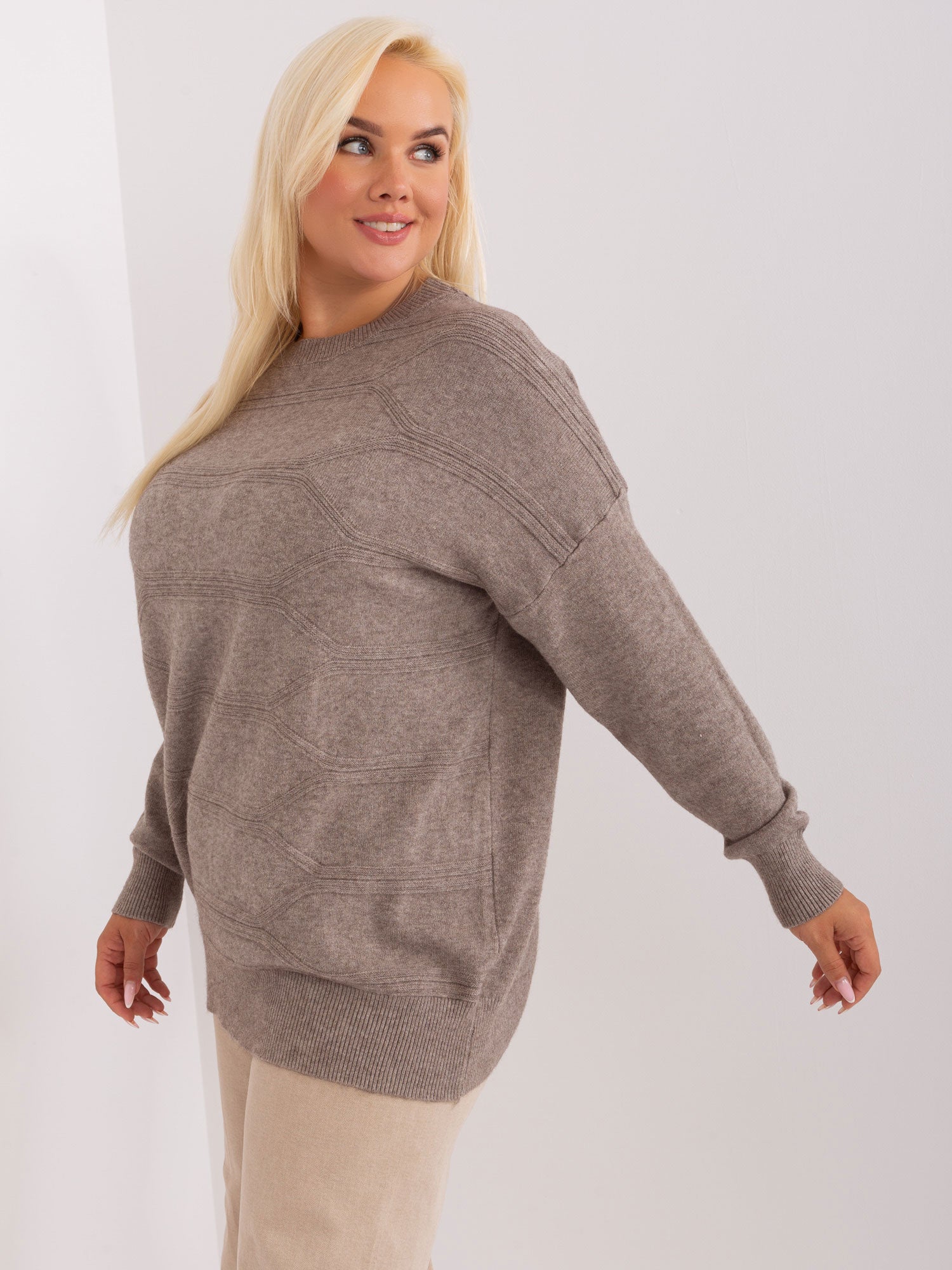 Ciemnobeżowy sweter plus size z okrągłym dekoltem .