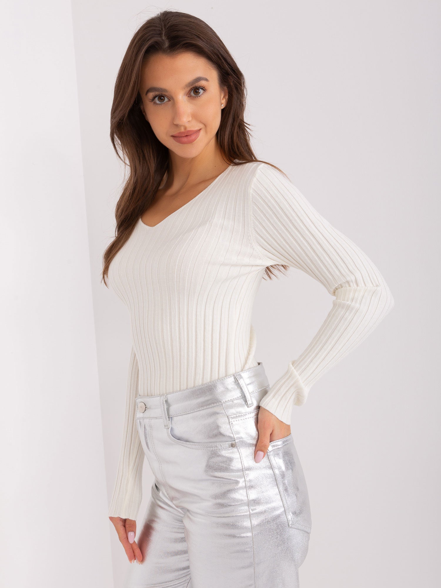 Ecru dopasowany sweter klasyczny z wiskozą .