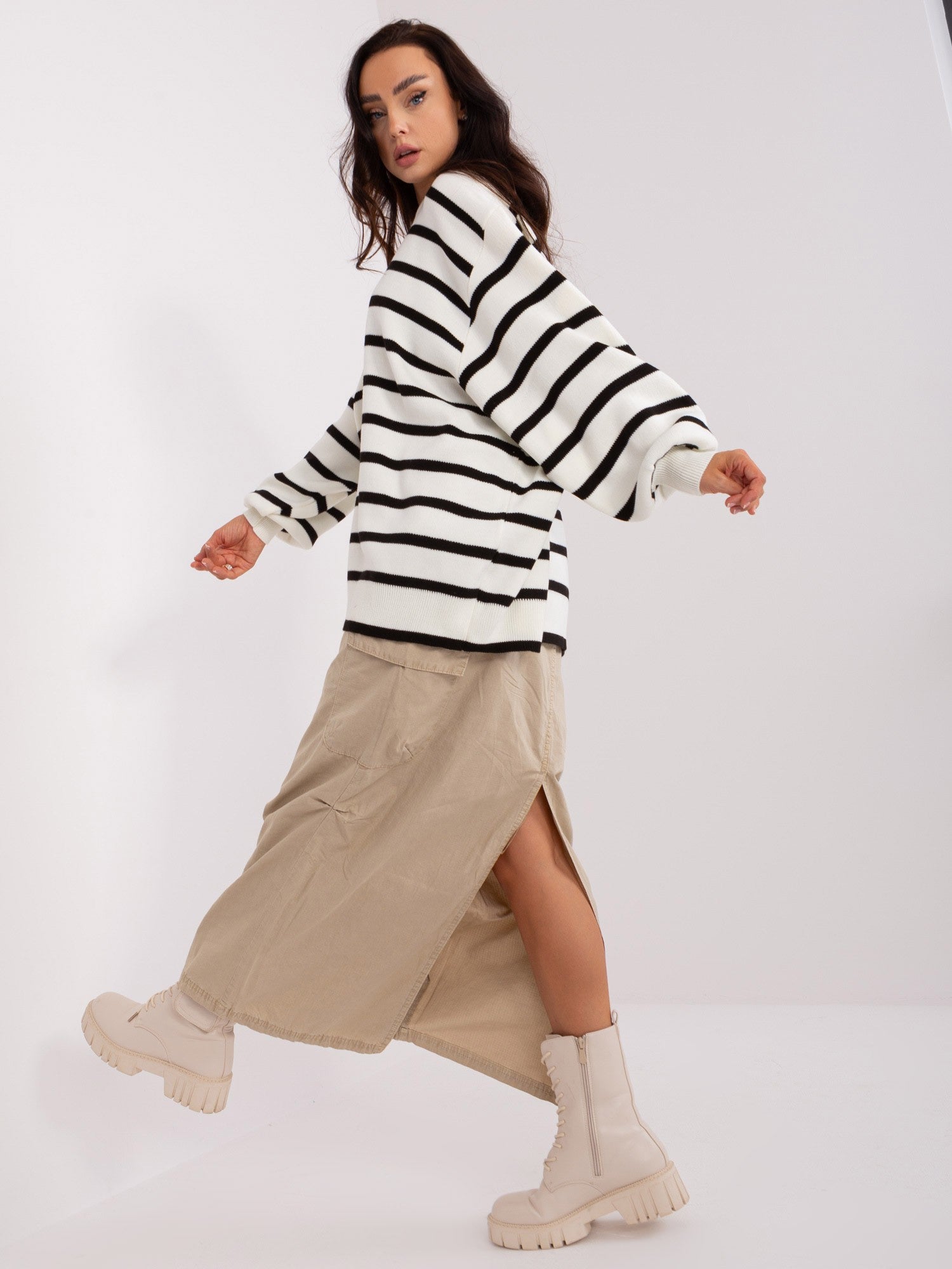 Wymiary swetra w rozmiarze one size mierzone na płasko: szerokość pod pachami - 71 cm, długość rękawa - 60 cm, długość całkowita - 72 cm.
