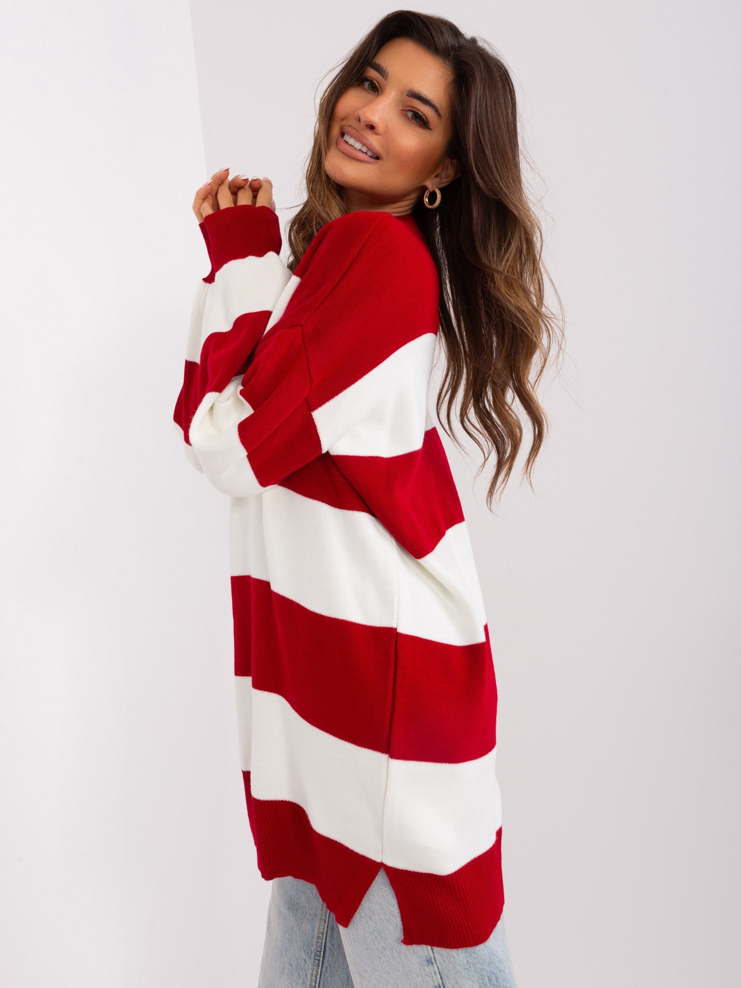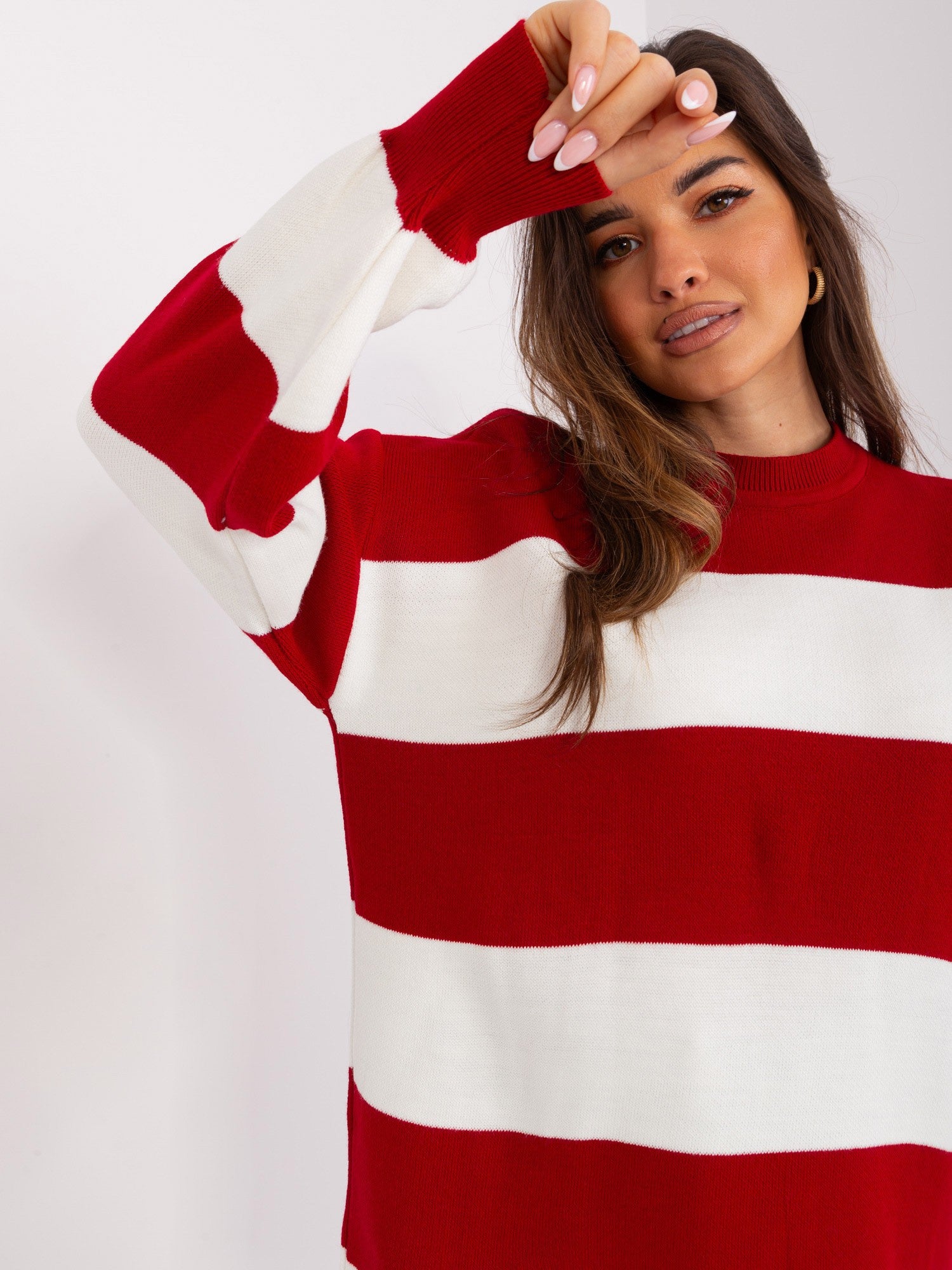 Bordowo-ecru długi sweter oversize .