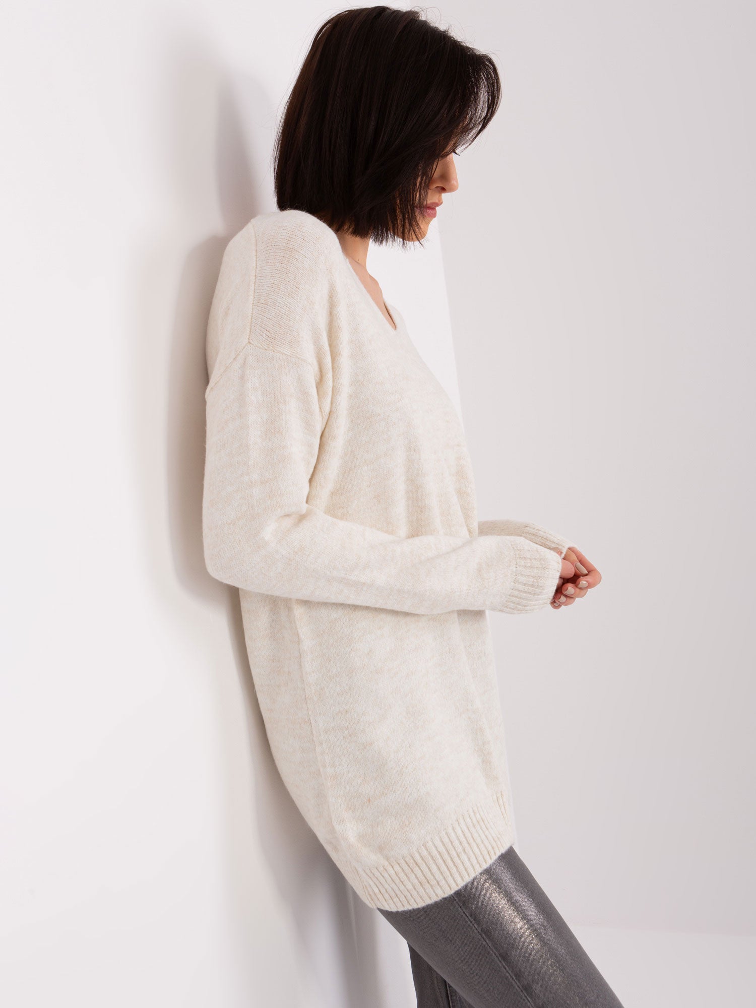 Jasnobeżowy długi sweter oversize RUE PARIS .