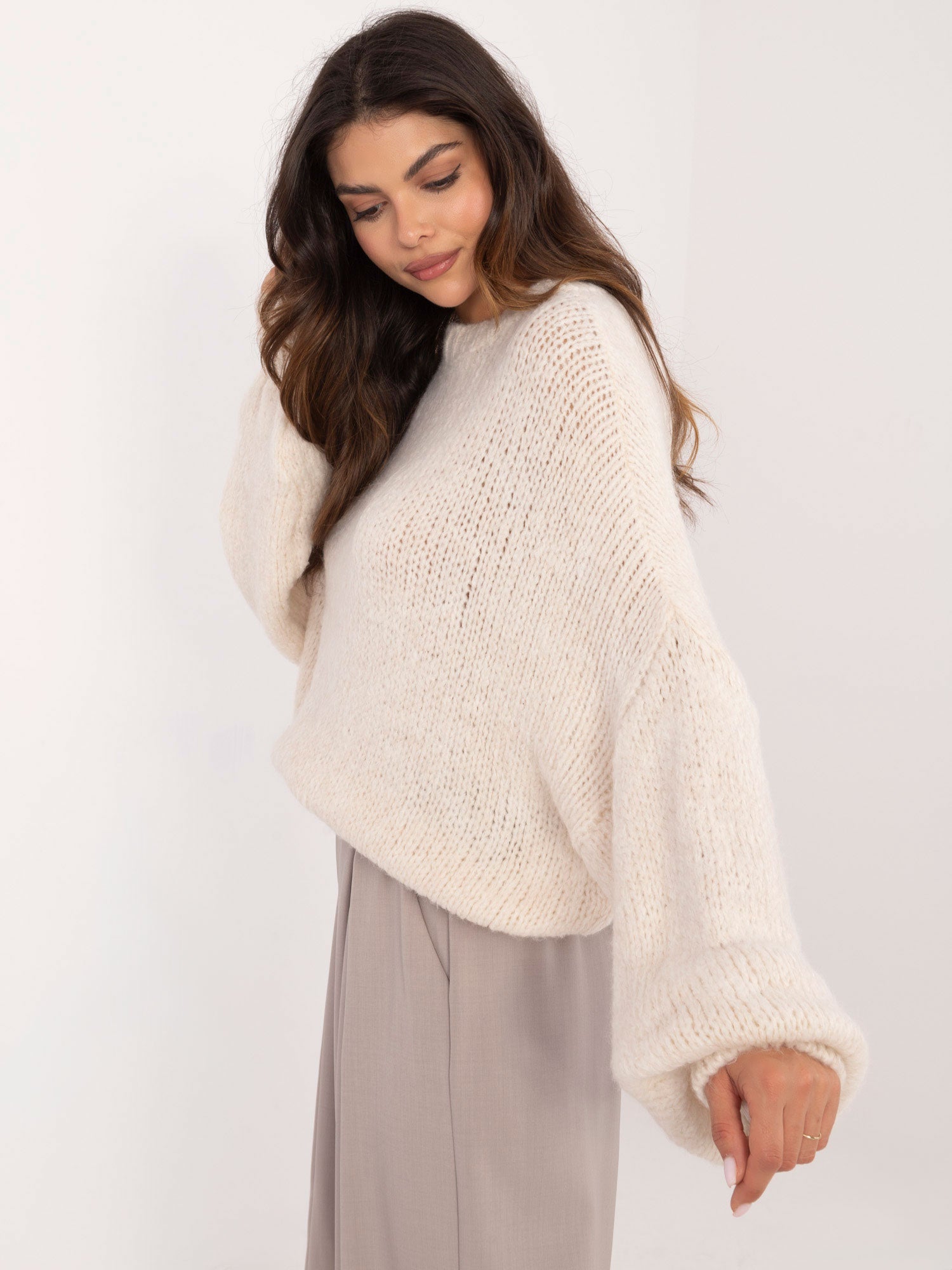 Wymiary swetra w rozmiarze one size mierzone na płasko: szerokość pod pachami - 70 cm, długość całkowita - 58 cm, długość rękawa - 72 cm.