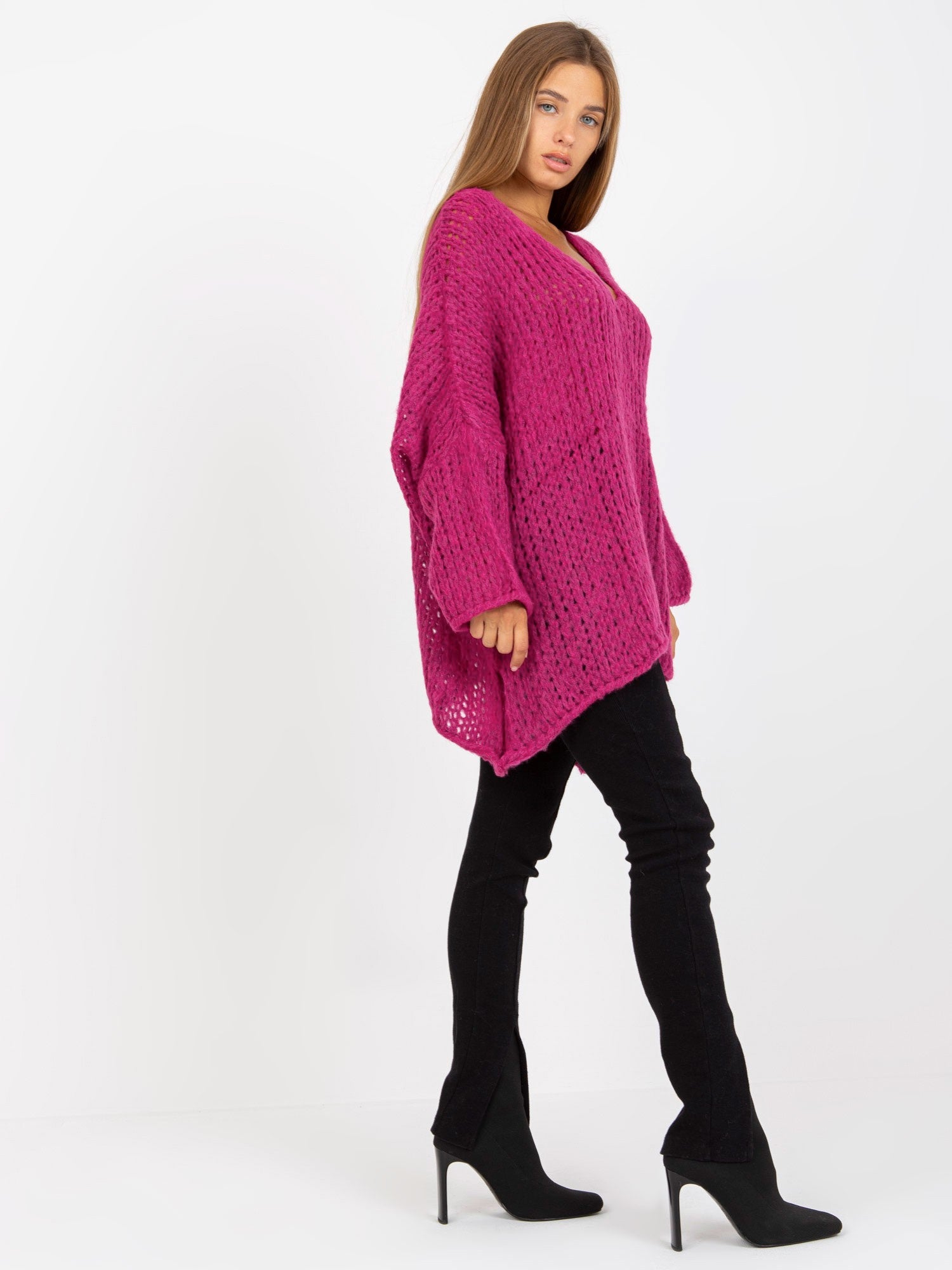 Fuksjowy sweter oversize z dodatkiem wełny OCH BELLA .