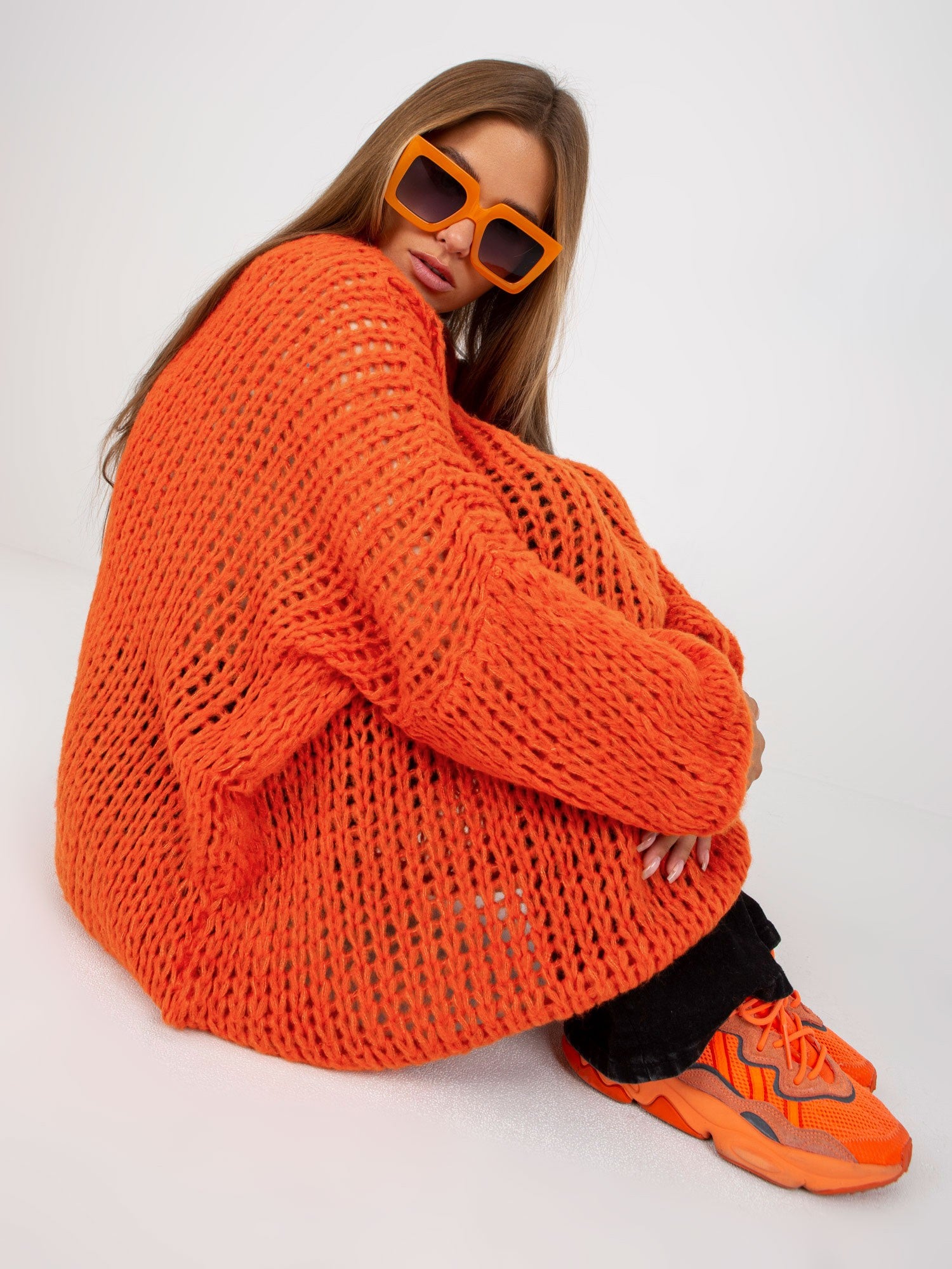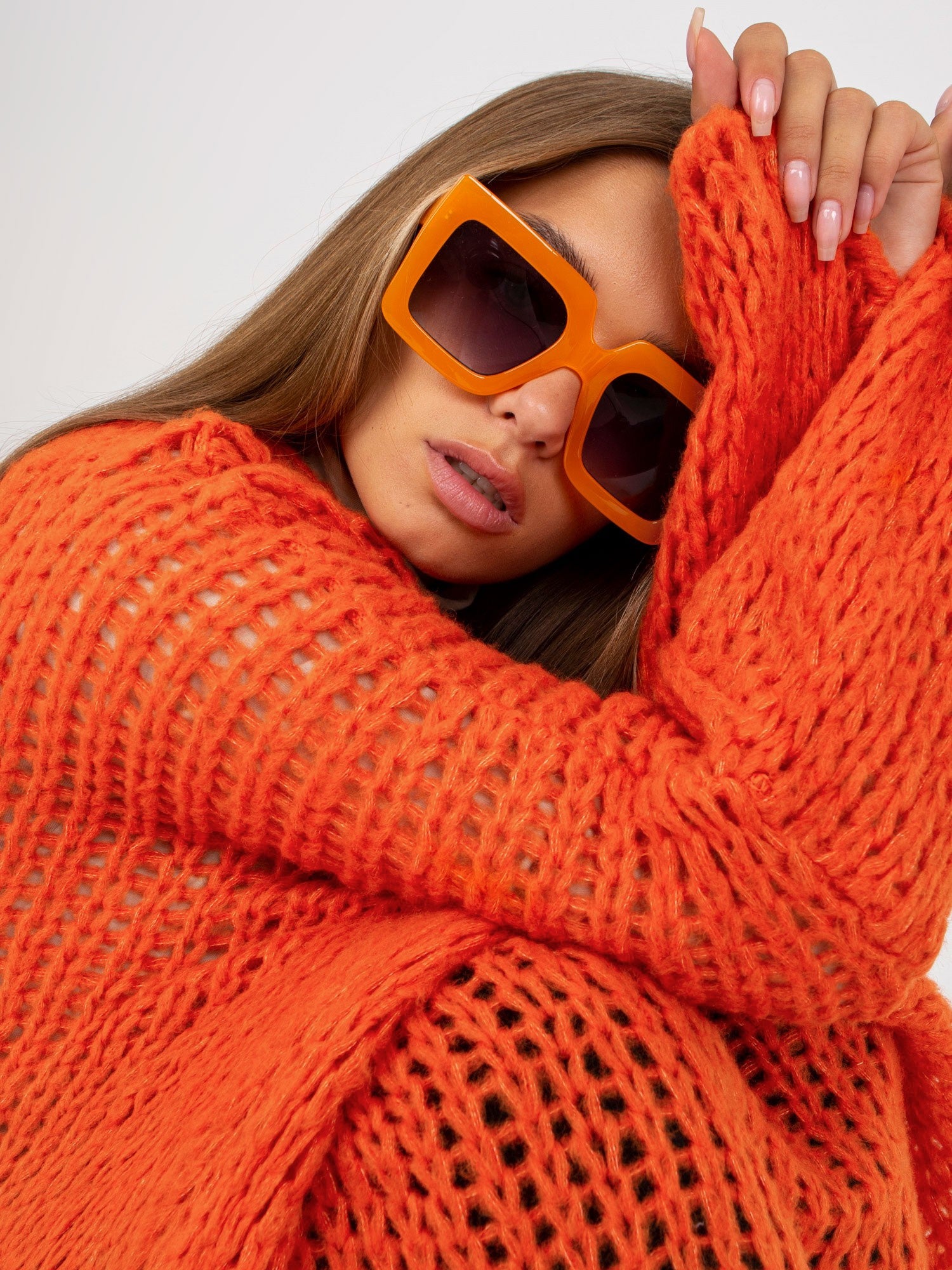 Pomarańczowy sweter oversize z szerokim rękawem OCH BELLA .