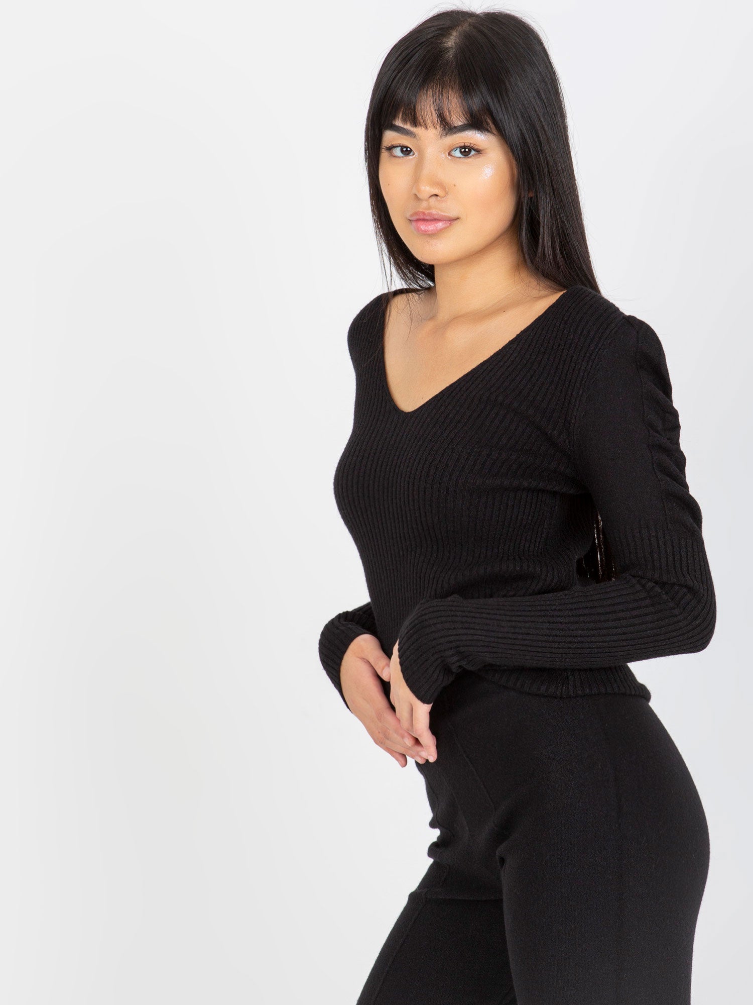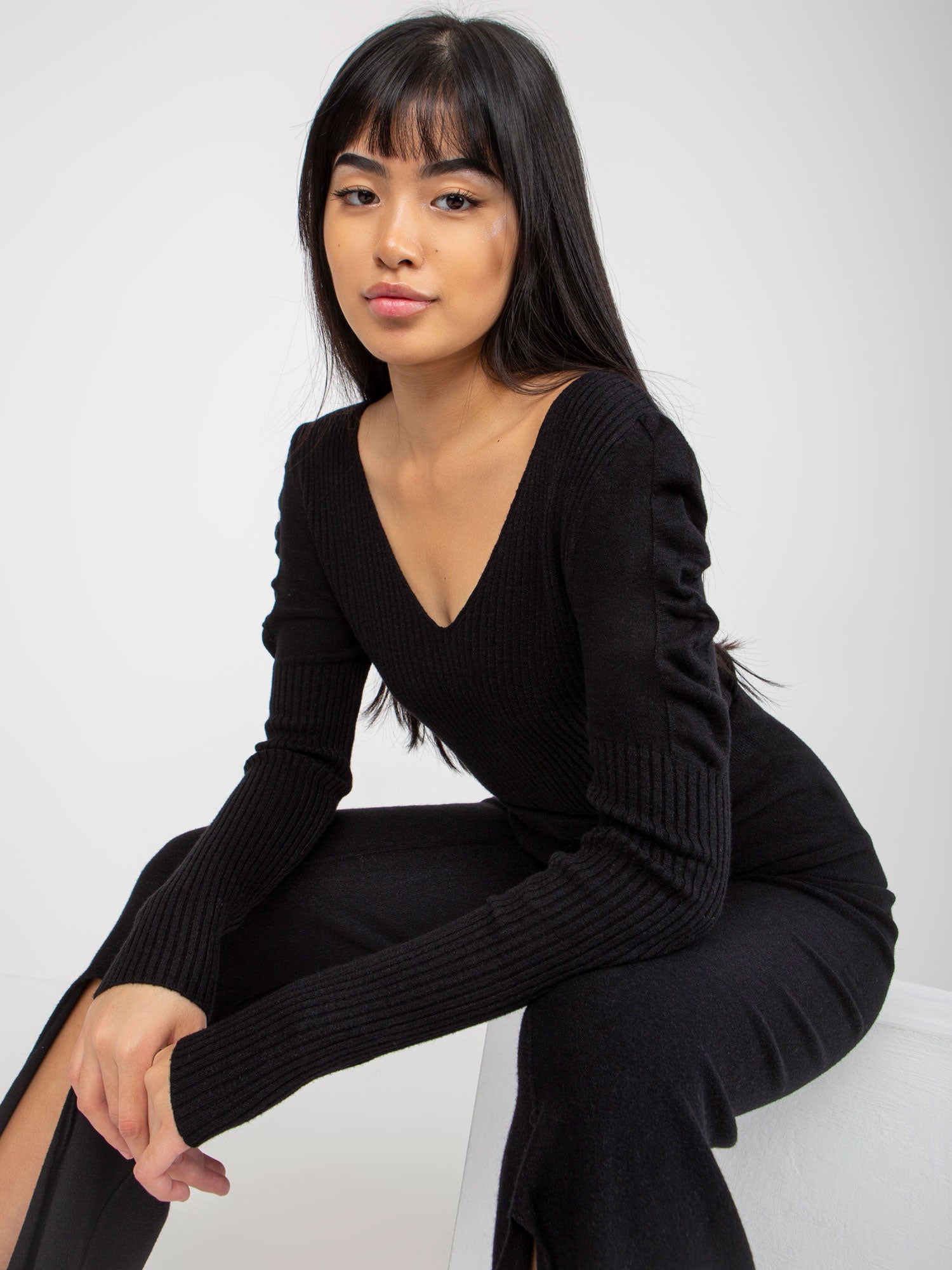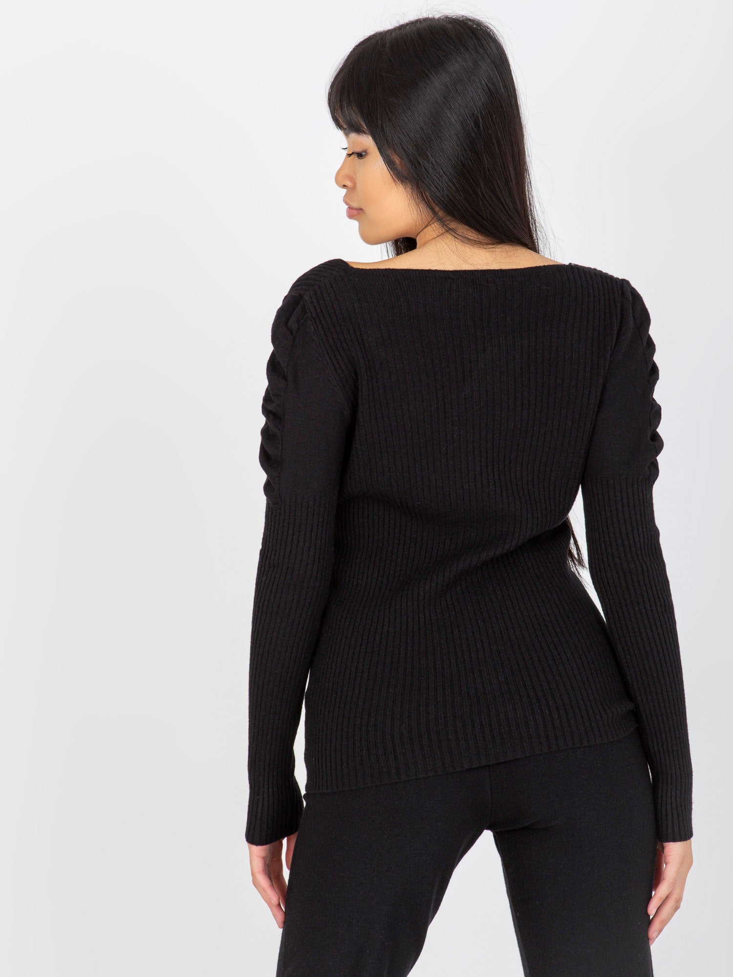 Czarny prążkowany sweter klasyczny z marzeniem na ramionach .