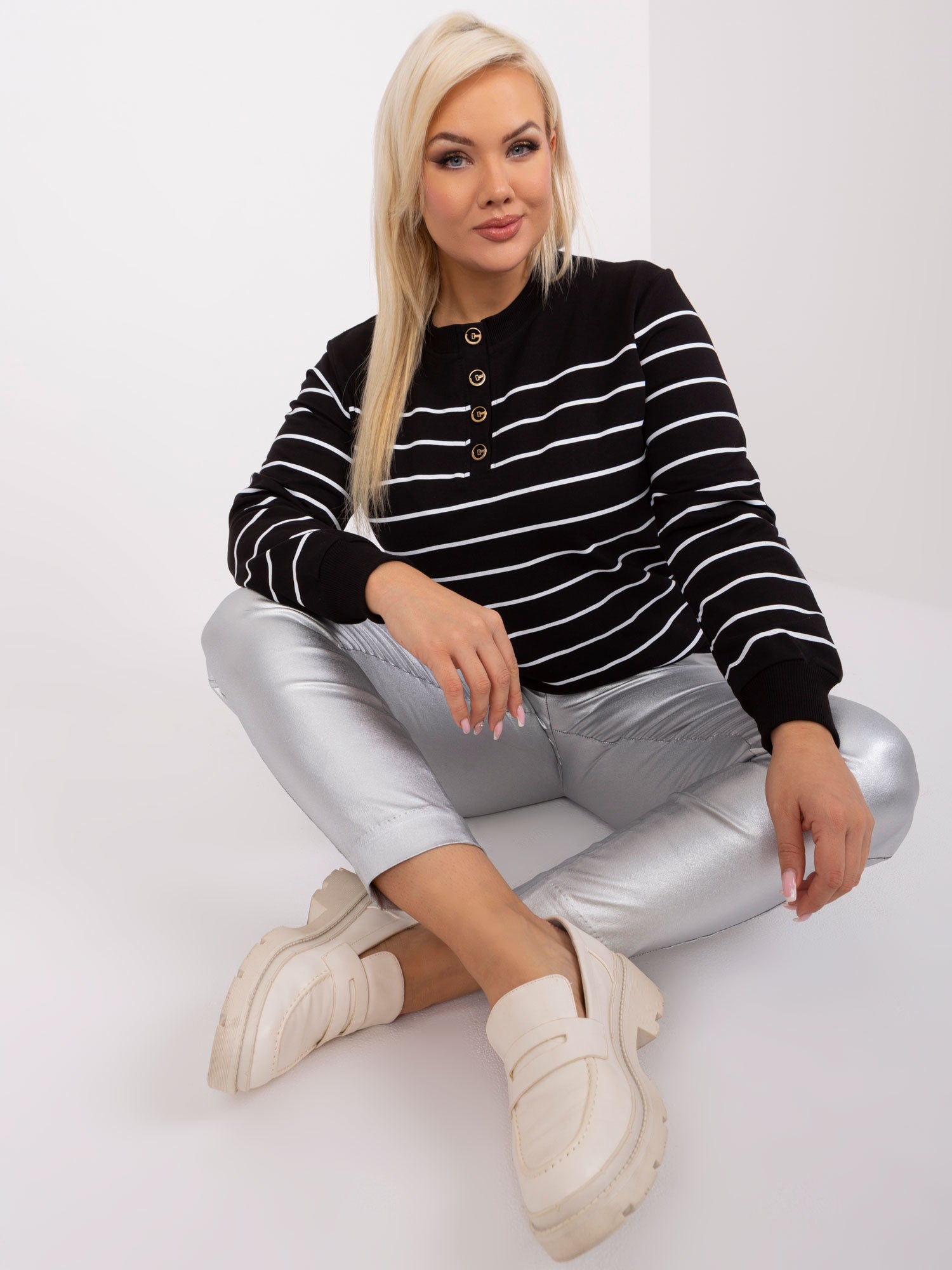 Czarna bawełniana bluzka plus size w paski .