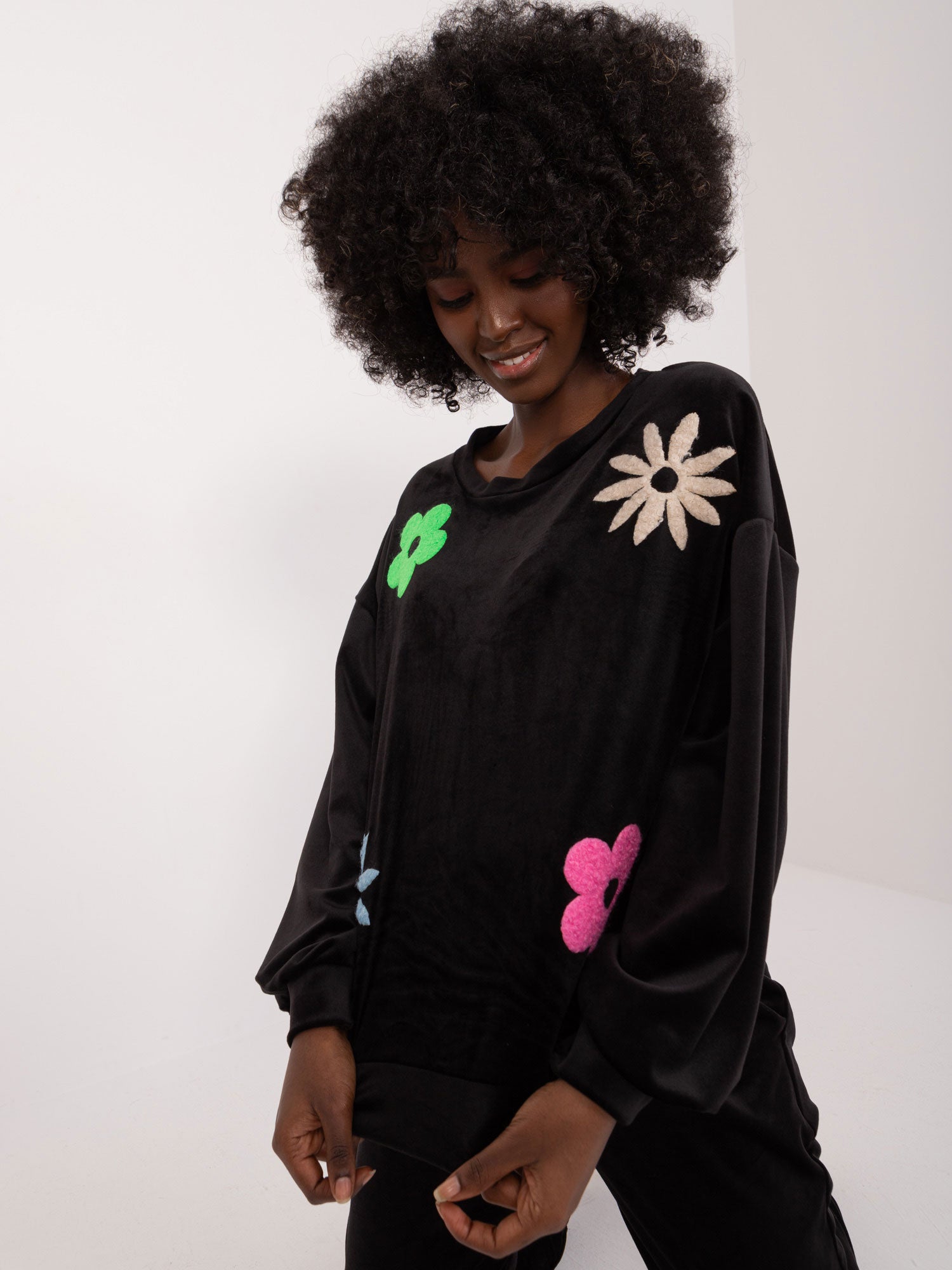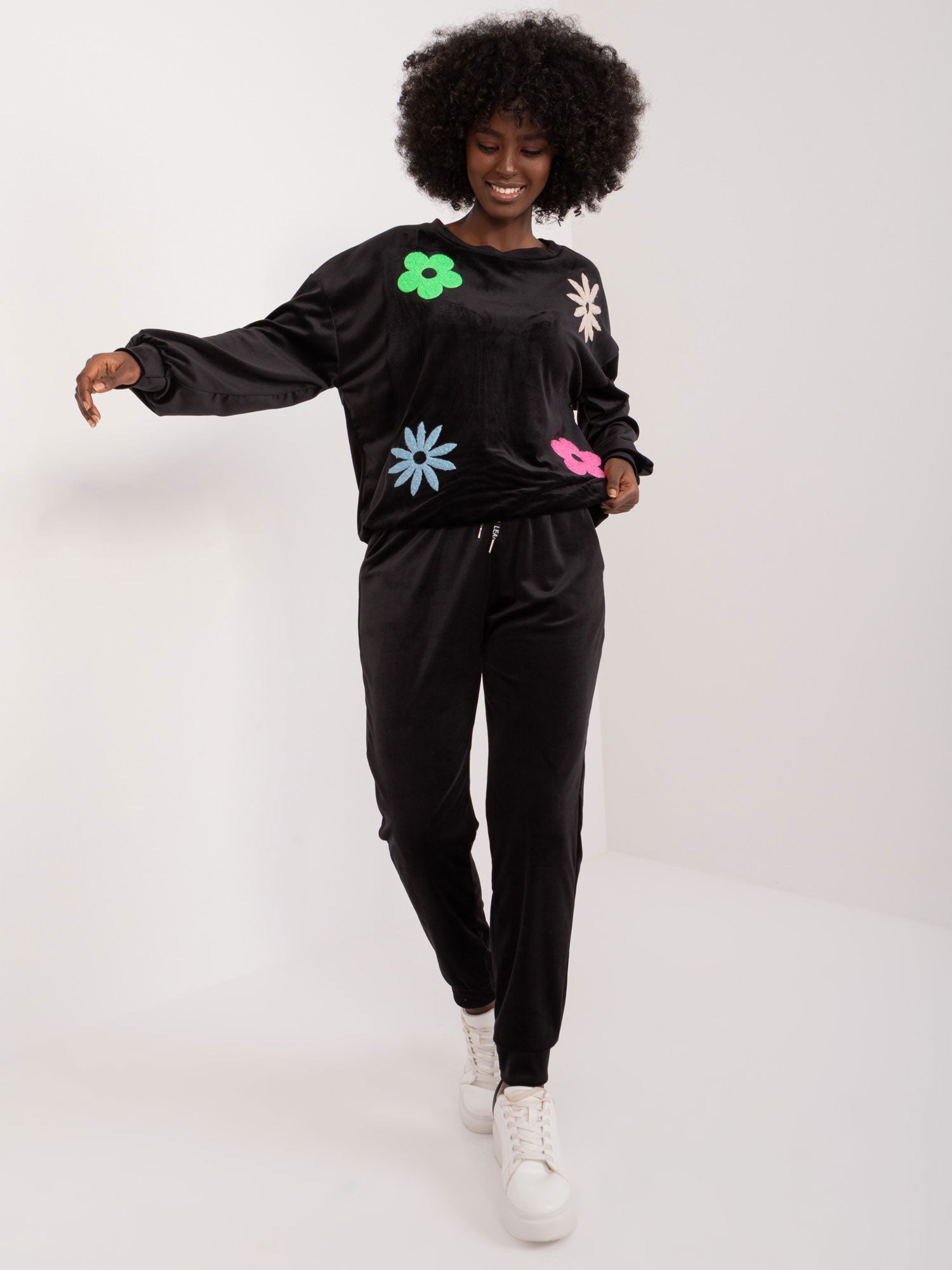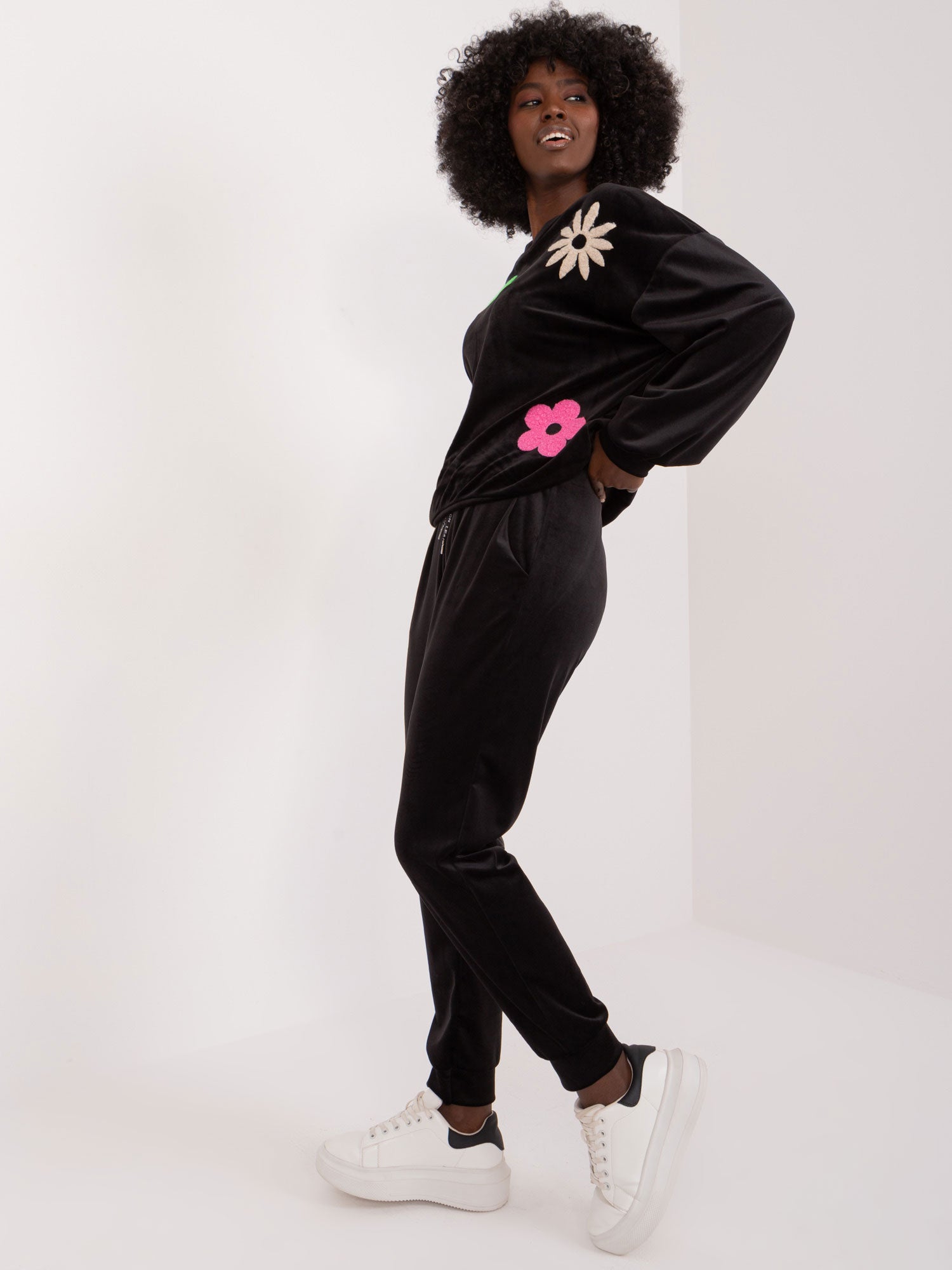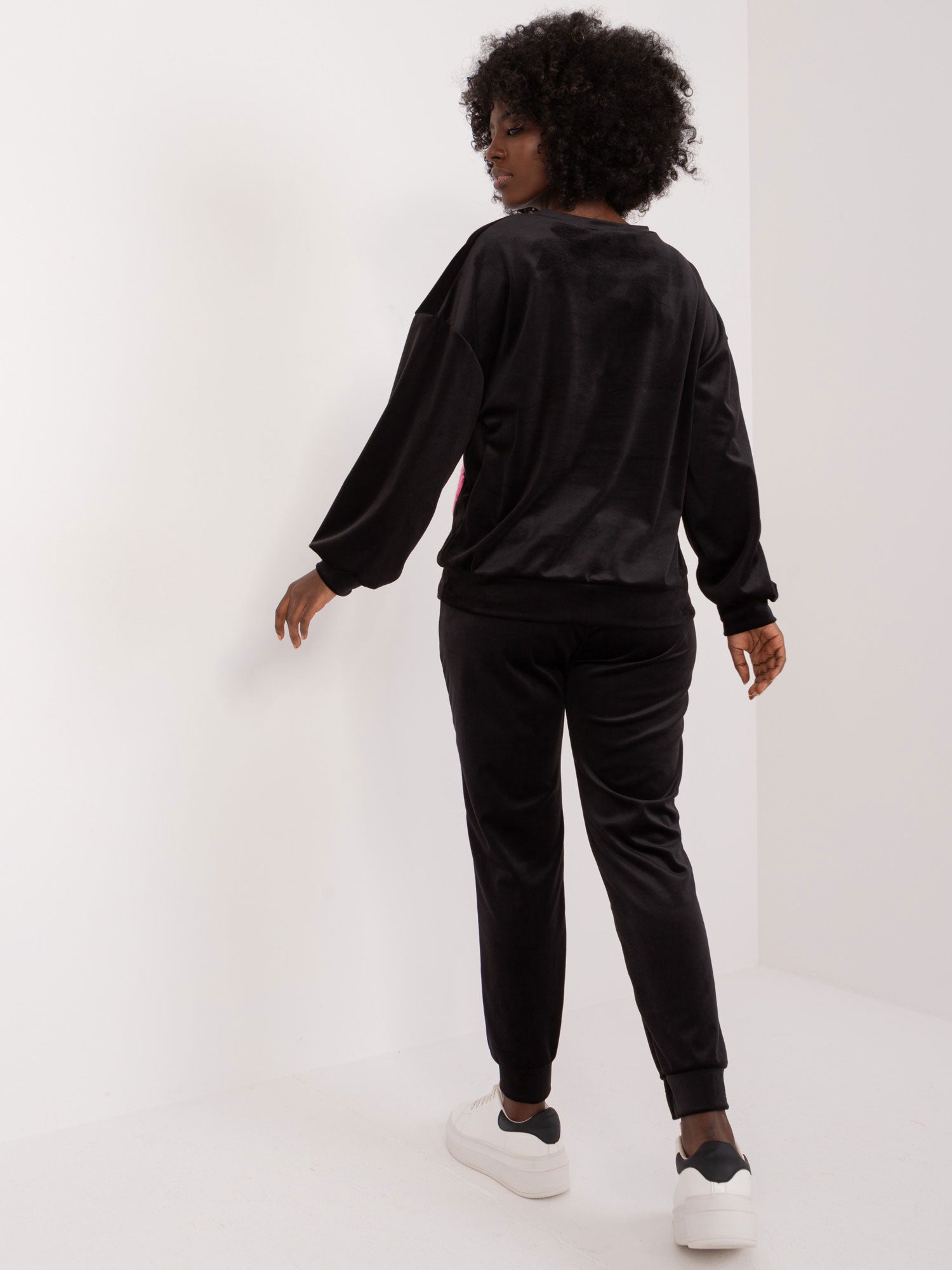 Wymiary kompletu w rozmiarze one size mierzone na płasko: szerokość bluzy pod pachami - 57 cm, długość bluzy - 57 cm, długość rękawa - 53 cm, szerokość w pasie - 37 cm, długość spodni - 95 cm, wysokość w pasie - 31 cm