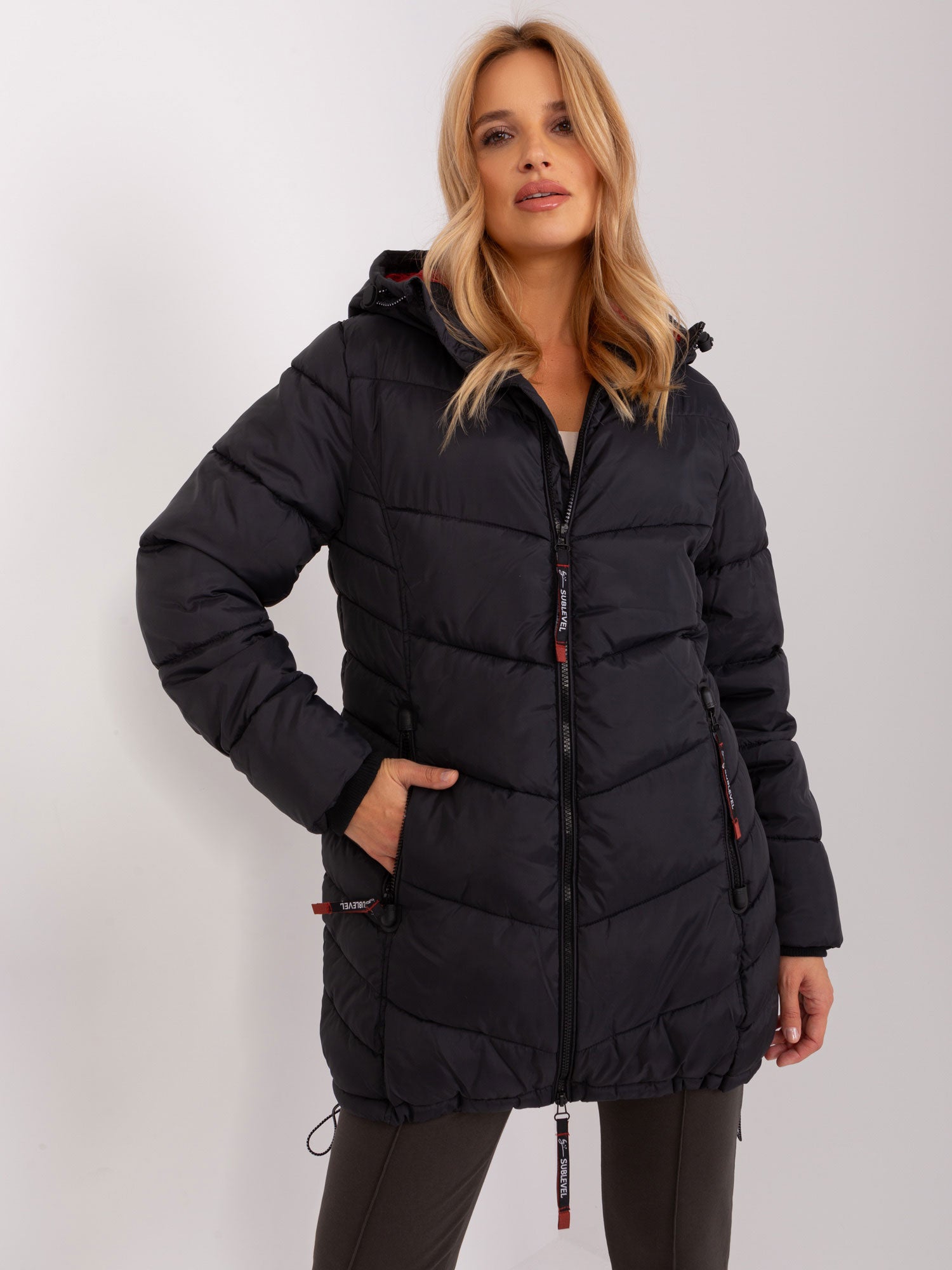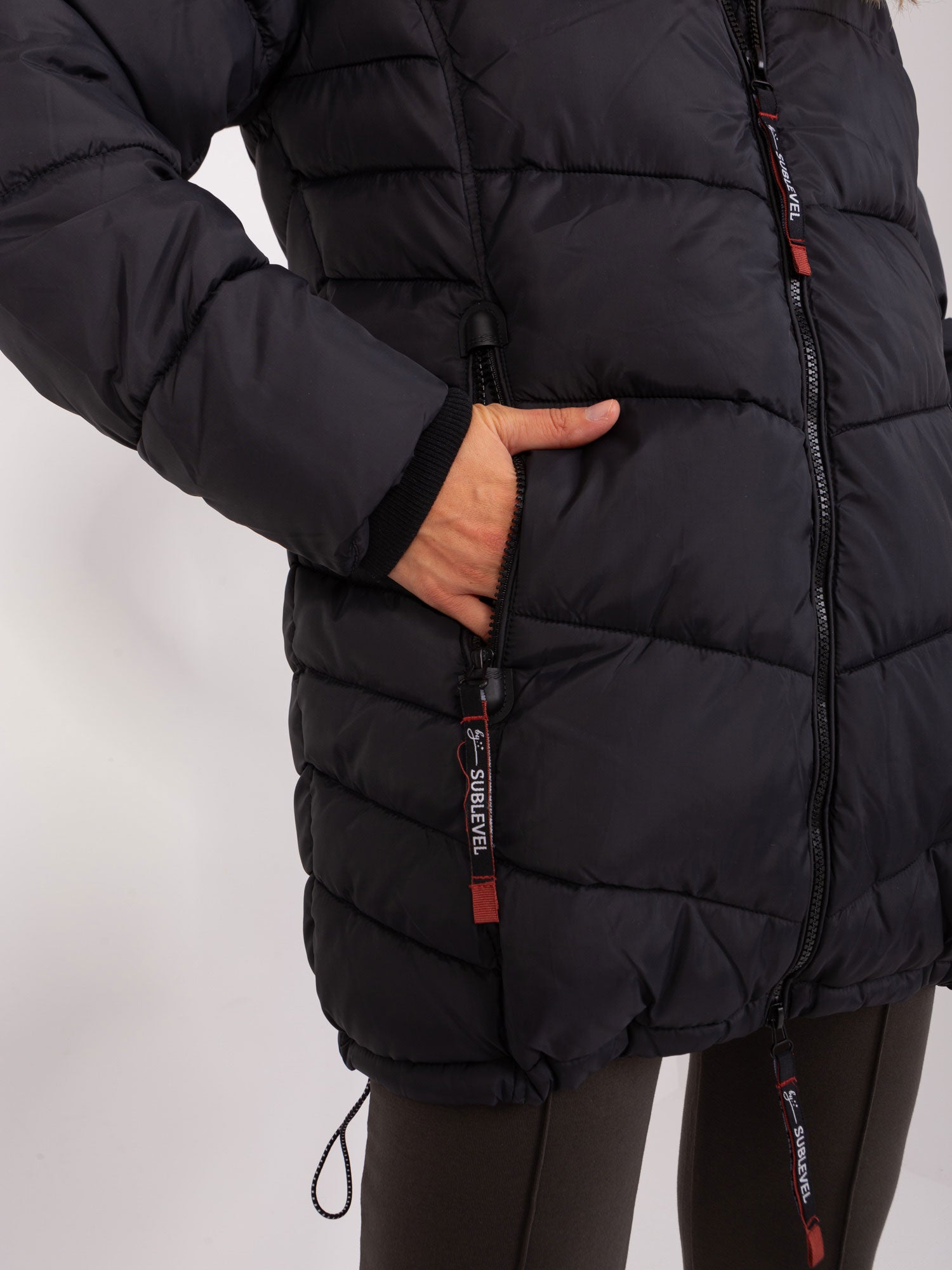 Czarna kurtka zimowa z kapturem SUBLEVEL.