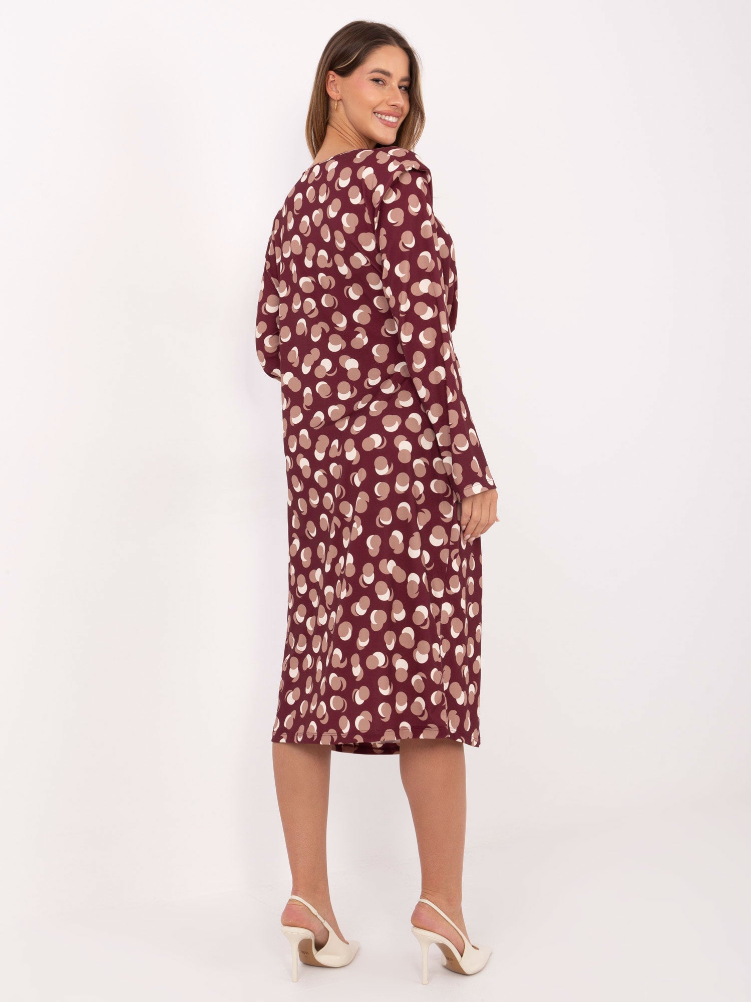 Wymiary sukienki w rozmiarze one size: szerokość pod pachami - 60 cm, szerokość w talii - 53 cm, długość rękawa - 64 cm, szerokość w talii - 50 cm, szerokość w biodrach - 60 cm, długość całkowita - 123 cm.