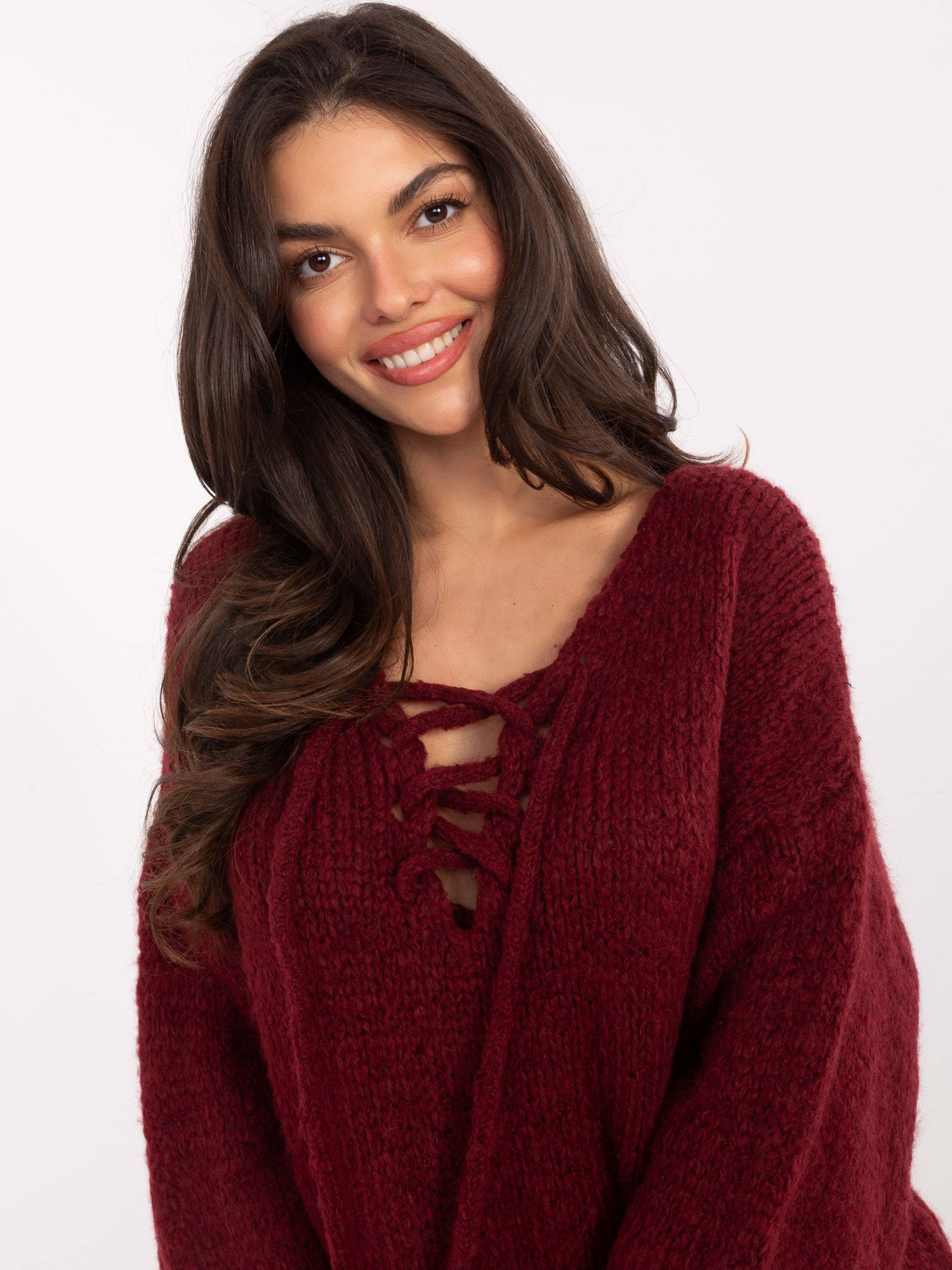 Wymiary swetra w rozmiarze one size: szerokość pod pachami - 68 cm, długość całkowita - 69 cm, długość rękawa - 44 cm (od szwu), szerokość w biodrach - 51 cm.